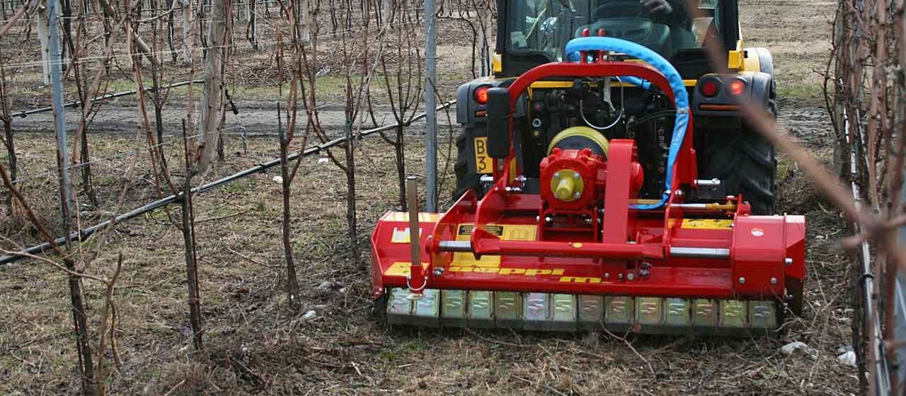 The flail mulcher SMWA slim characterize the ultra slim drive with low profile for high precision mulching in rows of orchards and vineyards. The low profile reduces contact with the plants. Vary small transmission through distribution of 2 and 3 high power belts. Gearbox with freewheel and through shaft