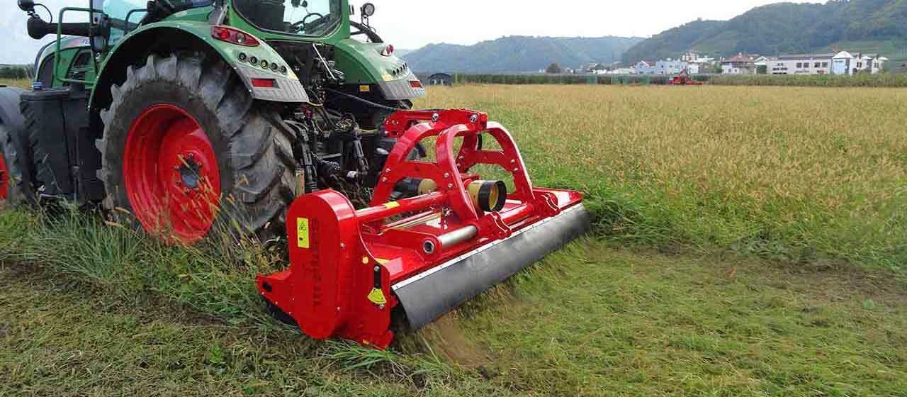 Helical distributed and high resistent SEPPI flails for universal use are for high cutting quality at uniformly distributed power. Double counterknives inside the casing will give a perfect result when mulching. Strong welded belt cover minimizes accidental damage. With the roller positioned close to the rotor, it is automatically cleaned by the rotating flails and the cut material is evenly distributed over the top of the roller. Adjustable large diameter roller positioned close to the rotor improves mulching on uneven ground and prevents scalping.