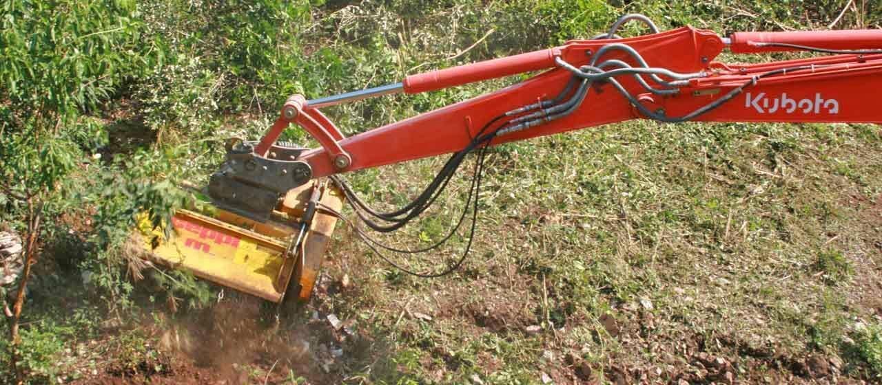 The SEPPI mulching head MINI-BMS is the lightest of forestry mulchers for excavator attachment. The light weight makes MINI BMS mulcher suitable for mounting on long excavator or forwarder arms and thereby reach even far off areas otherwise hard to reach.
