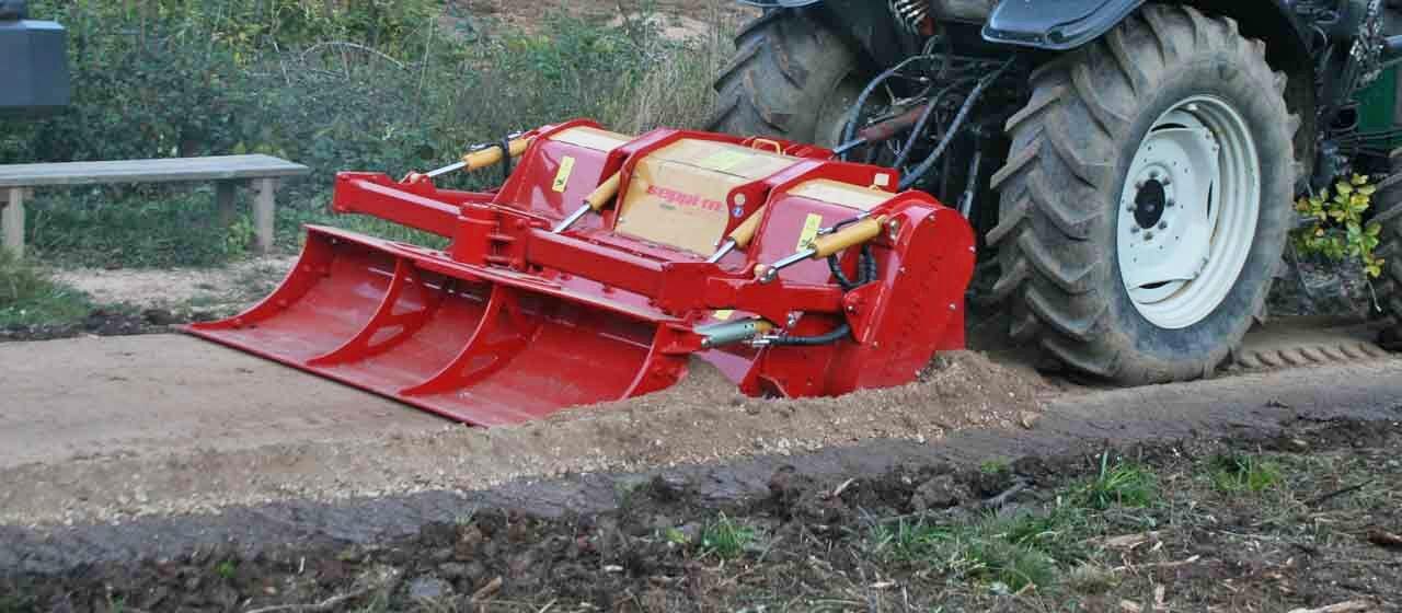 The SEPPI MIDIPIERRE dt is an upgraded version of the former MIDIPIERRE way. It comes with a new, innovative two-option linkage hitch, with a stronger transmission and additional crushing bars. The highlight is a new and more inclinable grader blade with pressure gauge. Very strong frame, for a very long life with reinforced frame made of wear-resistant steel. Available with Grader blade (option) with hydr. height and rotation adjustment and hydraulic-pneumatic damping incl. lateral extensions.