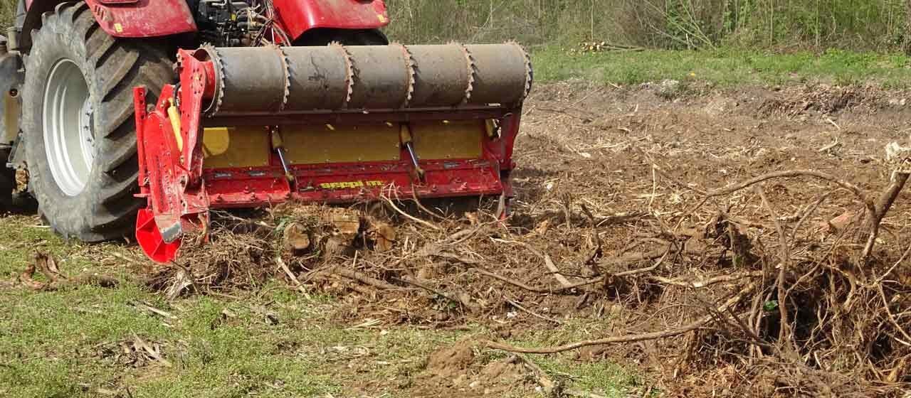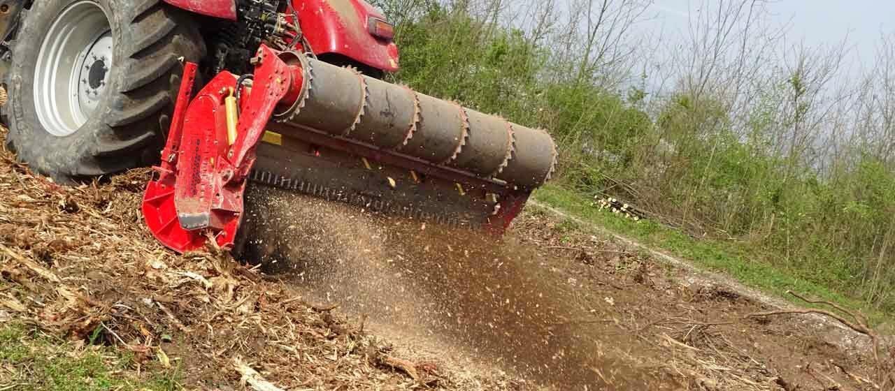 MIDISOIL dt can work at 1000 rpm with 1 or 2 speeds. That means that the rotor system can be changed depending on the job from approx. 1000 rev/min (mulching wood) to 540 rev/min (for stone crushing and soil tilling) maintaining the speed of the PTO shaft of the tractor at 1000 rev/min.This feature allows for a higher torque and hence better processing both during mulching wood (fast pace) and milling rocks and soil (slow pace).