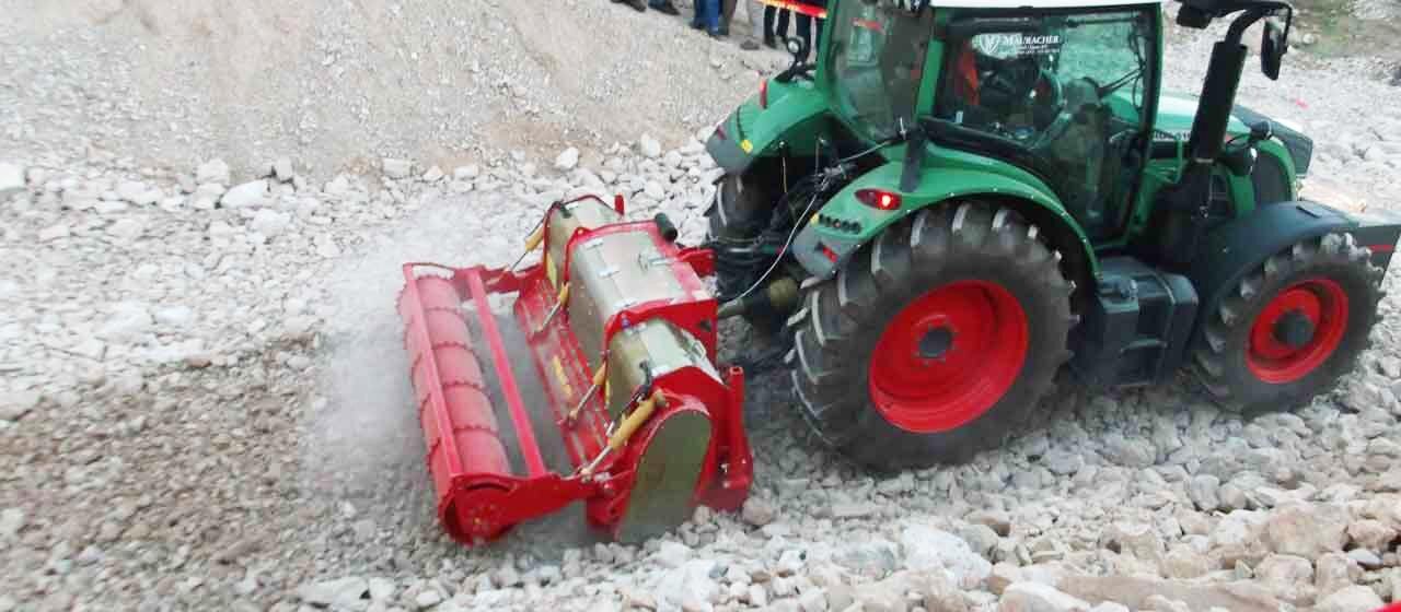With the NEW universal STONE CRUSHER and soil tiller MIDISOIL dt - the little brother of the STARSOIL, you can do many things: crush rock, stabilize the soil, grind stumps, mulch wood, and recycle paving material.