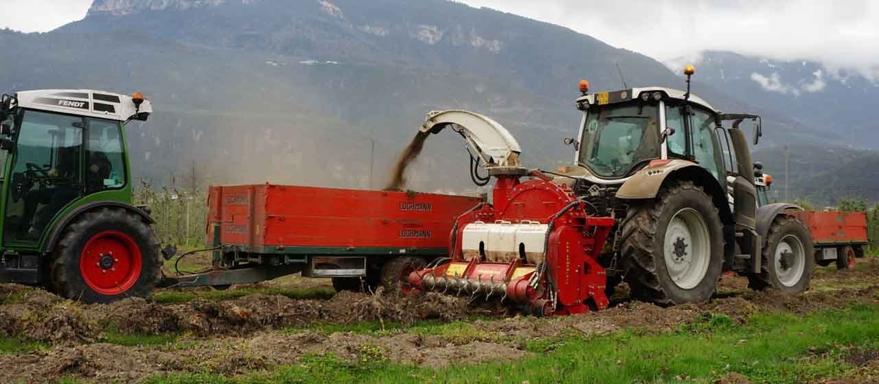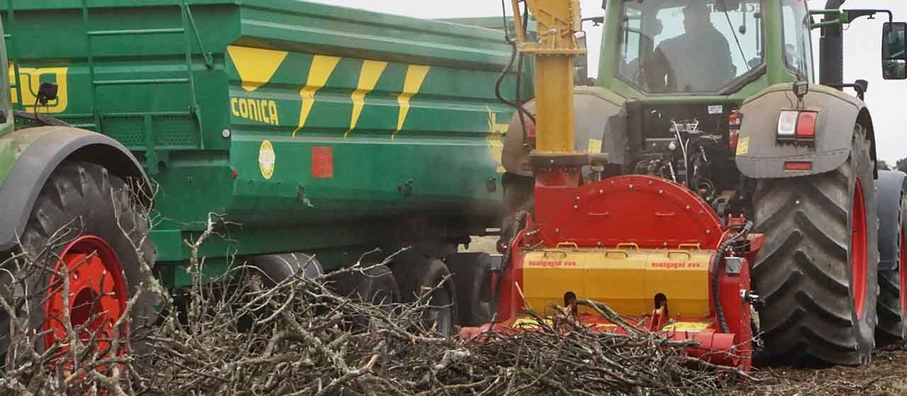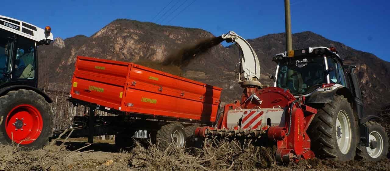 B20's expulsion chute is controlled by the operator using a hydraulic system (wheel up to 190 °): moreover, its inclination and the adjustable "spout" opening of the expulsion chute make it suitable for any trailer pulled by a second tractor in parallel for collection of the fine biomass. During transport, the SEPPI B20 expulsion chute can be withdrawn hydraulically.