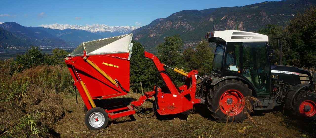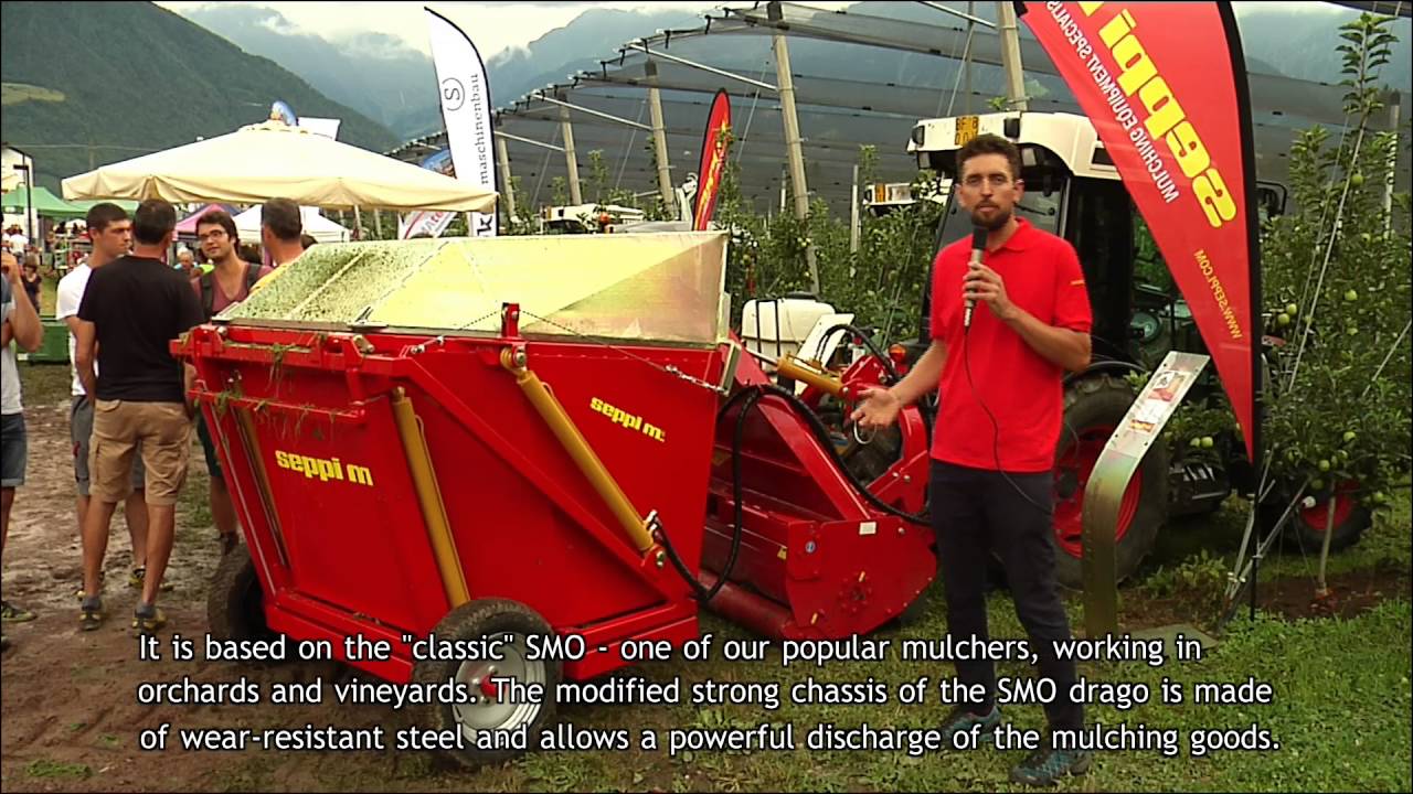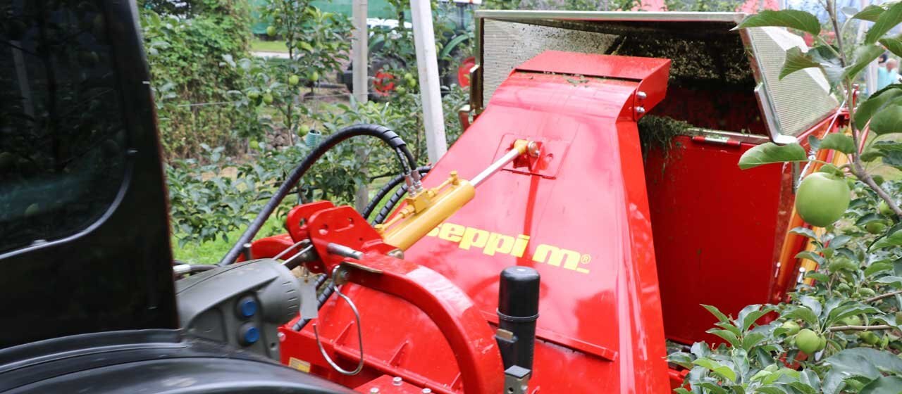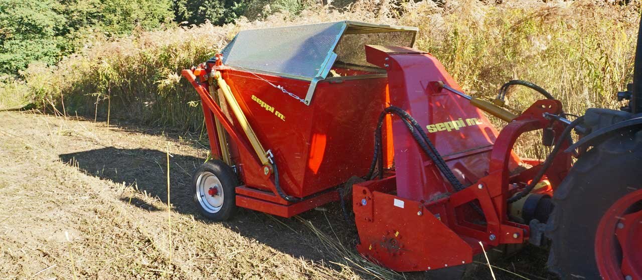Universal powerful SEPPI M. flail mulcher S7 drago with a chute for collecting the mulching material.