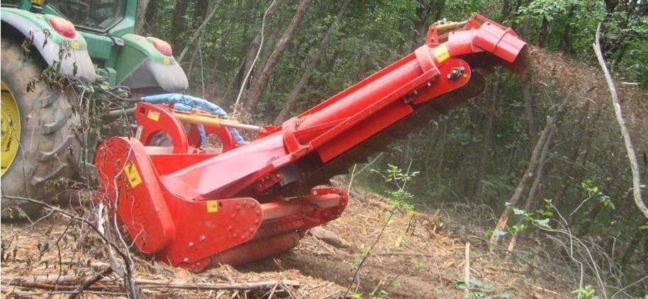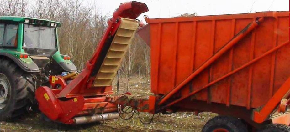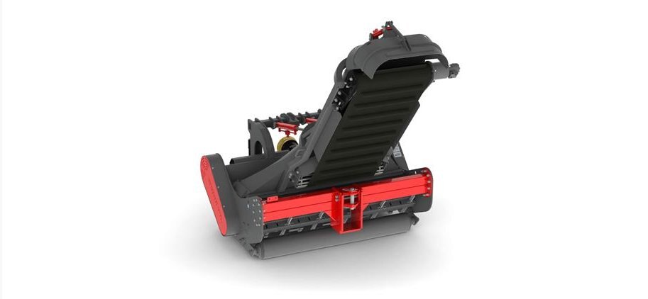 With the SEPPI mulcher MIDIFORST drago the mulched material is taken by a conveyer belt up the chute and can then be collected and carted away in a trailer, leaving the soil clear of material. The MIDIFORST drago mulcher collects wood up to 15 cm [6“] from the forest floor for further use. As well as wood various other materials such as grass, leaves and biodegradable waste can be mulched and collected. Aerodynamic chute transports dry and also wet material in large quantities to the top for efficient discharge. The chute of MIDIFORST drago is with hydraulic folding, also the chute deflector is hydraulicaly adjustable. Wear-resistant conveyor belt for high discharge. 4 staggered rows of counterknives inside the casing will give a perfect result when mulching.