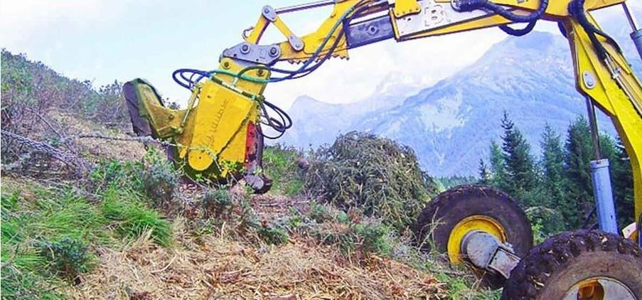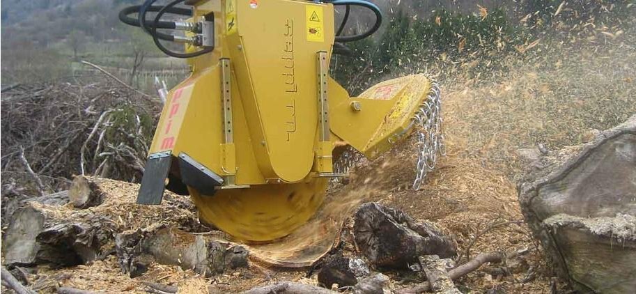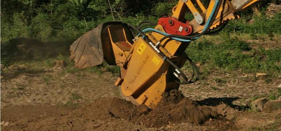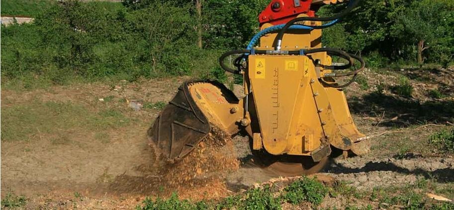 KASTOR hyd grinds the stumps as deep as 50 cm [20”] below the surface and any diameter. Any stump diameter can be eradicated, by swinging the excavator arm from one to the other side. The result is a fine mulch that may be easily incorporated into the soil and mixed with the ground, which fosters a quick decomposition. The stump has been removed completey, the soil is ready for new planting. The Rotor disk is equipped with very aggressive HRC-tooths. The specially developed angle of cut allows an ideal use of power. The Interface for spider excavators, available as an option, also works as a shovel. It helps mixing the ground stump chips into the soil, so to completely cover the whole left by the removed stump.
