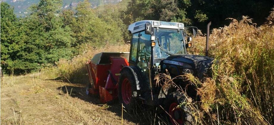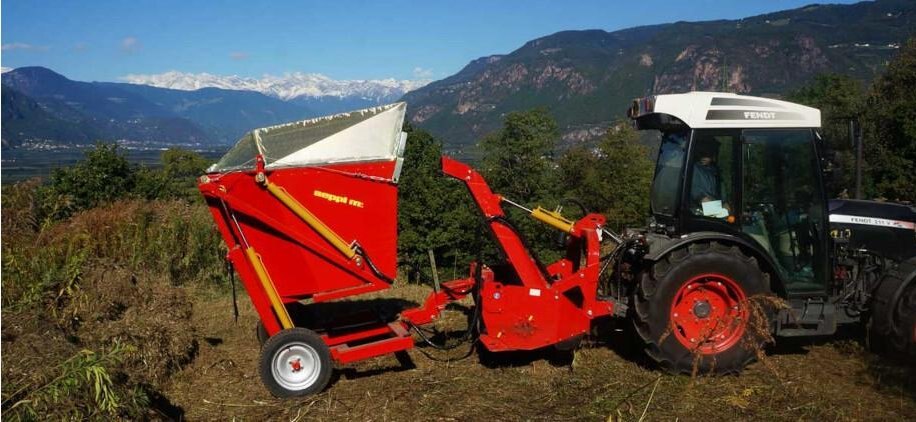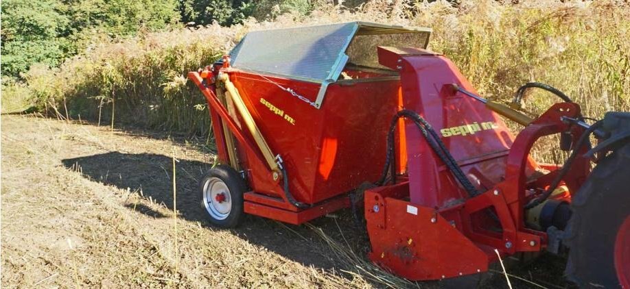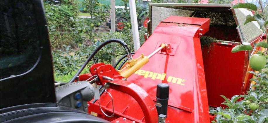 Universal powerful SEPPI M. flail mulcher S7 drago with a chute for collecting the mulching material.
