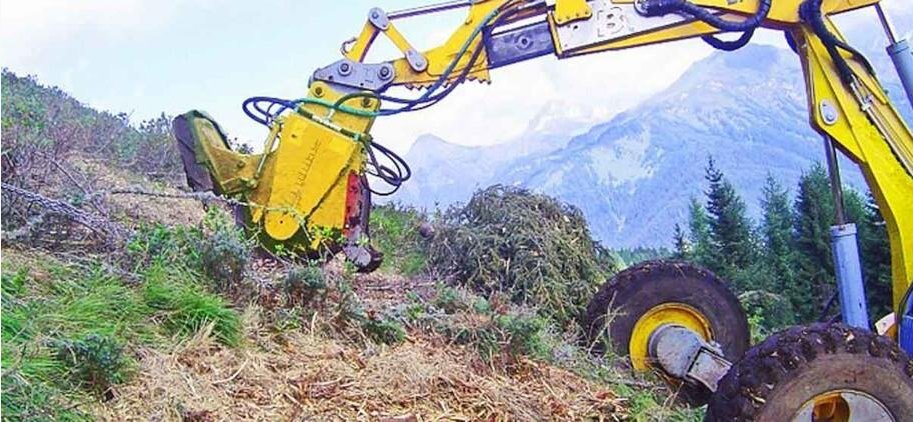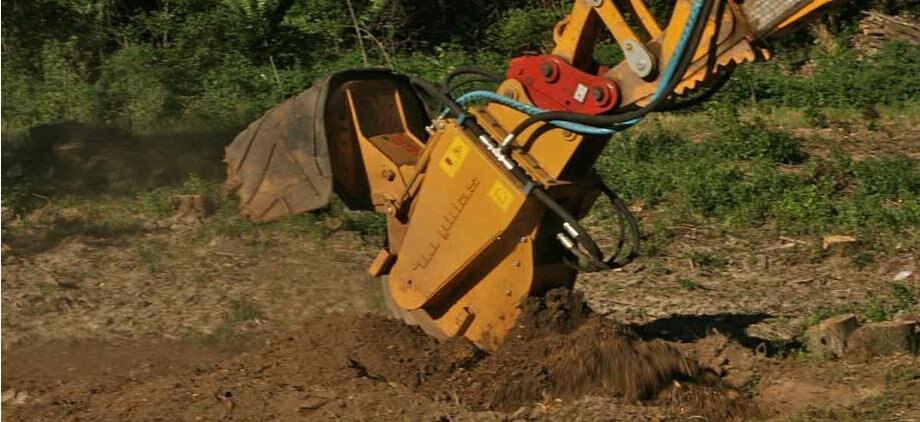 KASTOR hyd grinds the stumps as deep as 50 cm [20”] below the surface and any diameter. Any stump diameter can be eradicated, by swinging the excavator arm from one to the other side. The result is a fine mulch that may be easily incorporated into the soil and mixed with the ground, which fosters a quick decomposition. The stump has been removed completey, the soil is ready for new planting. The Rotor disk is equipped with very aggressive HRC-tooths. The specially developed angle of cut allows an ideal use of power. The Interface for spider excavators, available as an option, also works as a shovel. It helps mixing the ground stump chips into the soil, so to completely cover the whole left by the removed stump.