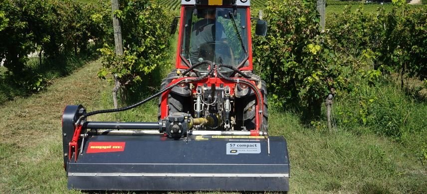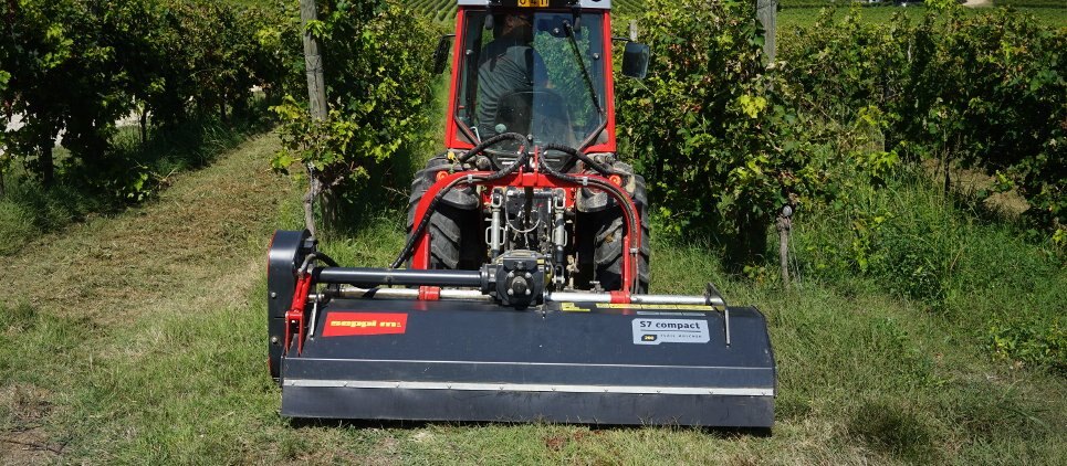 S7 compact mulcher is specially designed for vineyard and orchads. This robust flail mulcher mulches grass and pruning up to 7 cm [2.8”] Ø like all S7 models. With its center of gravity close to the tractor and a hydraulic side shift it is a perfect solution for your vineyard and orchards. The rotor comes standard with high-quality multipurpose flails. The helical layout of the flails (HELIX rotor) ensures even power distribution. Thanks to the high rotor speed, results are optimal even at high travel speeds of up to 10 km/h. The two rows of tempered COUNTER CUTTERS are now interchangeable and can be easily replaced in case of wear. The standard chassis can be equipped with additional interchangeable WEAR PLATES for works in more difficult conditions, making it even more resistant. The protective chains are combined with the guards. As such, during travel, the guards tilt and move the chains, creating a barrier that prevents the material from getting jammed inside the chains, allowing it to pass through and be mulched by the rotor. Belt guard with deflector to reduce the risk of damage to plants and the machine itself. Even the rear hood has been further developed. The chassis is slightly more closed and the hood is fitted with a new manual adjustment system allowing it to be opened directly on-site, without the need for any tools. The height of the sturdy support roller is now easier to adjust, and the 4D bearing guarantees smooth and vibration-free working even on rough terrain. The result is a clean cut with higher working speeds, minimal consumption, simple maintenance and long machine life. Applications: in agriculture for orchards or vineyards, vegetation management, a.s.o. Available working width: 150, 175, 200, 225 cm [49", 59", 69", 79", 89"]. |