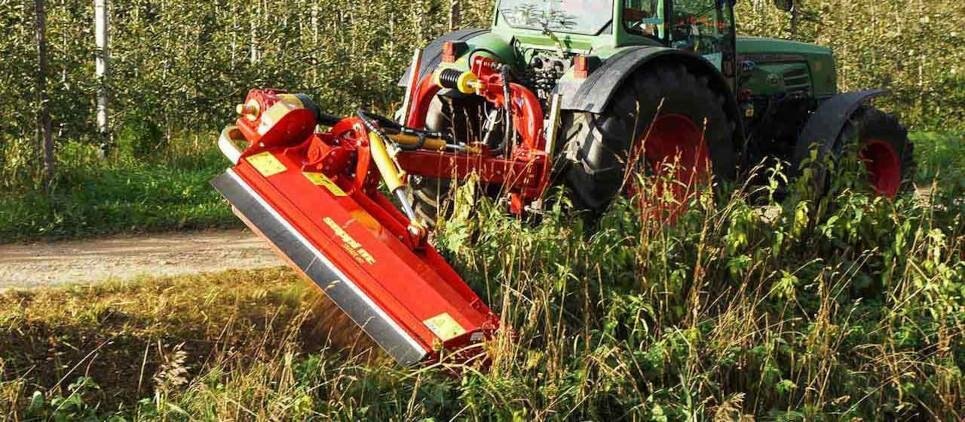 TheSEPPI SMWA avs is an offsetting mulcher ideal for areas hard to reach such as ditches, slopes and river banks but also does a great mulching job on steep road sides, orchards and vineyards. Great versatility is achieved by ample side shift in addition to hydraulic angling. The SEPPI SMWA avs can work from 90° up angling to 50° down angling, independent from the side shift, centrally behind the tractor, or offset to the side, and reach up to 274 cm [198“] to the right of the tractor center line, depending on the working width of the mulcher. Maximum side shift is 136 cm [54“]. High resistent thanks casing made of high-tensile steel S420 and reinforced bearings. Two possibilities to place the gearbox: Gearbox inside of machine keeps the mower close to the tractor (appropriate e.g. for orchard rows). External gearbox (optional) allows large outrigging. The optional safety breakaway system FLEX-SAFE™ prevents breakage of the linkage. Articulated attachment frame allows dynamic flexation. Available working width: 155, 175, 200 cm [61", 69", 79"]. |