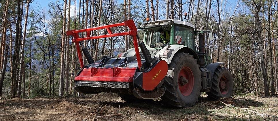SEPPI MAXIFORST is a professional PTO forestry mulcher designed to be mounted on tractors from 300 to 500 hp. The largest, strongest, most productive in the SEPPI M forestry mulcher range. A newly designed SEPPI MAXIFORST with improved features in cutting, reliability, ease of use using the latest technology and solutions in the industry. This result takes our new MAXIFORST to a whole new level. This new mulching machine is designed for use on PTO tractors with a power range from 300 to 500 HP, focusing on the key features of maximum wear resistance, optimal protection of the transmission of both the tractor and the machine, high working speed, cutting-edge technology and operator safety. Wear resistance is guaranteed by the high-quality steel construction, with the addition of HARDOX plates in the grinding chamber of the rotor housing and door, which can be easily replaced at the end of their life, a feature already widely adopted in our stone crushing machines. The sturdy steel skids now also have an interchangeable wear plate, so it will no longer be necessary to change the whole skid or lose time restoring it by welding with a filler. The transmission has been completely revamped. The central gear box has our patented ADAM alignment system, while the transmission of power to the rotor is guaranteed by the tried and tested dual system with five V-belts on each side. Optional is a new starting system with M-TURBO fluid couplings, which replace mechanical centrifugal clutches, and guarantee a smooth start of the rotor and greater reliability and protection from impacts on the tractor’s PTO. New optimized ventilation is also included, which combined with the integrated cooling system, protects the entire system from overheating, ensuring maximum lubrication and sealing performance of the components. The temperature can be kept controlled directly from the tractor, using ISOBUS technology, which is available as an option. The speed and quality of the cut are guaranteed by the rotor featuring our patented V-LOCK tool mounting system. The benefits of this system reduce rotor wear, provide better balance, easier and faster tool changeover, and increase cutting capacity for trees up to 60cm in diameter. The mounting of heavy-duty wear-resistant tools with tungsten carbide insert and more slender tips combined with five rows of tempered counter knives on the frame and door, delivers a finer, more uniform mulching performance. Available working width: 250, 300 cm [98", 118"]. |