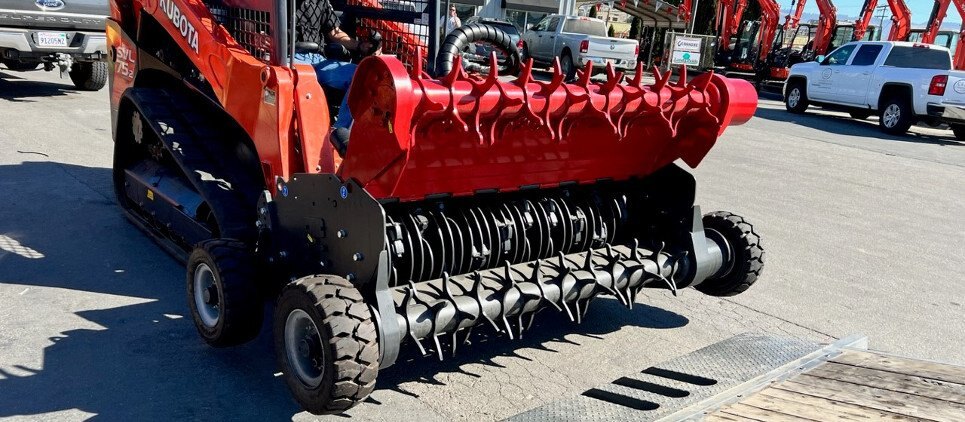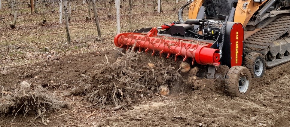 Certain crops produce very high quantities of prunings. This can cause big problems when it is time to mulch them. Burning is often illegal and is always bad for the environment. The SEPPI Miniforst pick-up cl mulcher provides a perfect solution – picking up the prunings with a pick-up reel at ground level and, if needed, reinforcing the feed into the machine with an optional top reel. This results in a fast biodegradation, just one cultivation cycle. The SEPPI MINIFORST pick-up cl forestry mulcher for compact loader is particularly suitable for olive, citrus, walnut and almond cultivations and stony conditions SEPPI MINIFORST pick up cl casing is very resistent, made of high-tensile steel. Counterknives inside the casing will give a perfect result when mulching. Standard is the mulcher equiped with 2 pick-up rotors: Upper pick-up kit consisting of rotor BIONIX FEED on the hydraulic hood, motor and hydraulilc system with flow control. The pick-up rotor is driven by tractor hydraulics. Lower pick-up kit consisting of frame with lower pick-up rotor BIONIC FEED, support skids, motor and hydraulic system with flow divider and perssure gauge for easy control of the pik-up rotors. The mulching rotor RIC (Radial Interference Cut) is a SEPPI patented helical rotor with SUPER MONO TIP hammers with tungsten carbide tip. This type of rotor is very agresive and resistent. Available working width: 175 cm [69"]. |