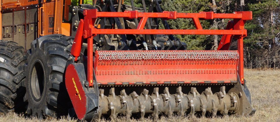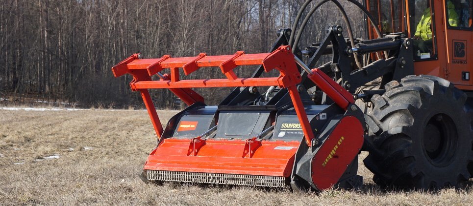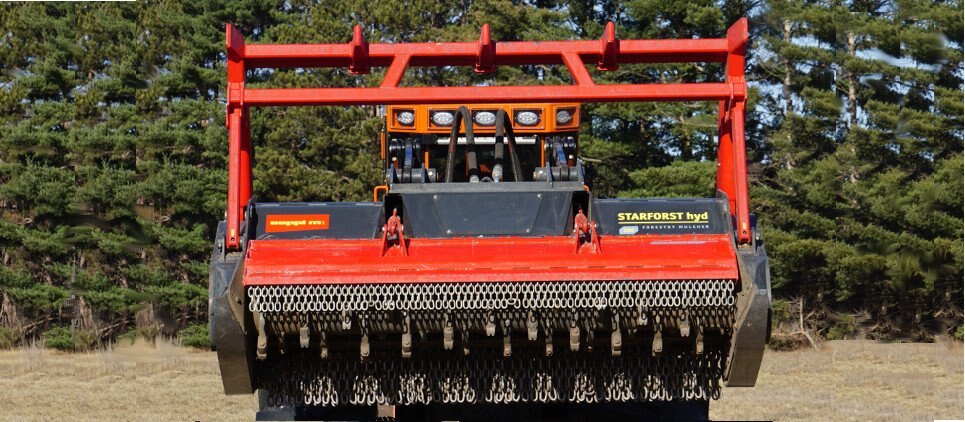 The new version of SEPPI wood mulcher STARFORST hyd comes with universal attachment interface. It is the right mulching equipment for medium sized prime movers. Patented, easy to change SEPPI tungsten carbide fixed hammers type MINI DUO and anti-wear hammer supports. Large exposure of the rotor to the trees promotes fast mulching. The new CARBONCHAIN gear belts provide high strength and length stability with high flexibility. Two hydraulic motors M-BOOST for high pressure and high oil flow. Different types of guard frames for felling operations and to protect the tractor available. Chassis of SEPPI STARFORST hyd is very strong with internal replaceable plates made of AR400 hardened steel It performs greatly on any type of vegetation management: right-of-way, land clearing, site prep, gas & pipeline maintenance, power transmission, road side and creation of fire break strips. Overall width adapted to road traffic regulations - for an optimal use of the working width. Available working width: 210, 235, 260 cm [83", 93", 102"]. |