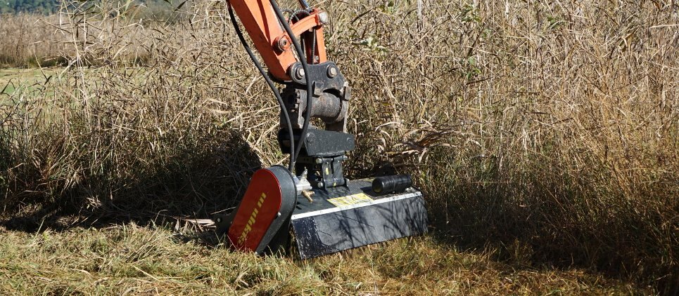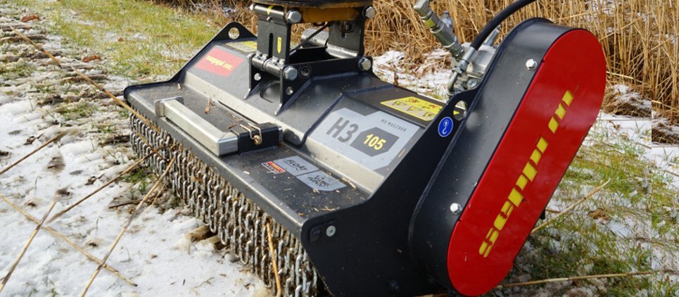 The SEPPI excavator mulcher H3 is the lightest excavator attachment from SEPPI M. comes with reinforced frame made of wear-resistant steel AR400 for a very long life. H3 mulching head is ideal for mounting on mini-excavators for the maintenance of small greenspaces, riverbanks and canals, right of way clearing and green space maintenance. Reinforced bearing and stronger support roller, reinforced frame made of wear-resistant steel AR400 for a very long life. The mechanical float adaptor to follow the contours of the ground is now in standard version. Prepared for transmission with hydraulic motor of choice. Available working width: 60, 85, 105, 125 [25", 33", 41", 49"] |
