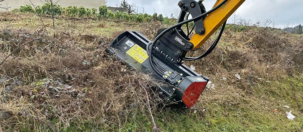 The model H-SMO-B is a strong and versatile SEPPI flail mulcher for mowing and maintaining wasteland and areas difficult to access. This hydraulic attachment is trong and universal mower to be mounted on tyre or tracked excavators for maintaining overgrown areas and slopes, land clearing, right of way management and green spece maintenance. SEPPI H-SMO-B mulching head is prepared for an individual interface plate for excavators of different brands. The rear hood allows the adjustment of the degree of mulching. With the stong support roller it is possible to adapt to the contours of the ground and to adjust the height of cut. Mechanical float adaptor follows the contours of the ground. Available working width: 125, 150, 200 [49", 59", 79"]. |