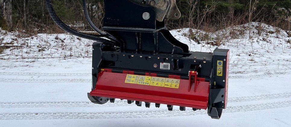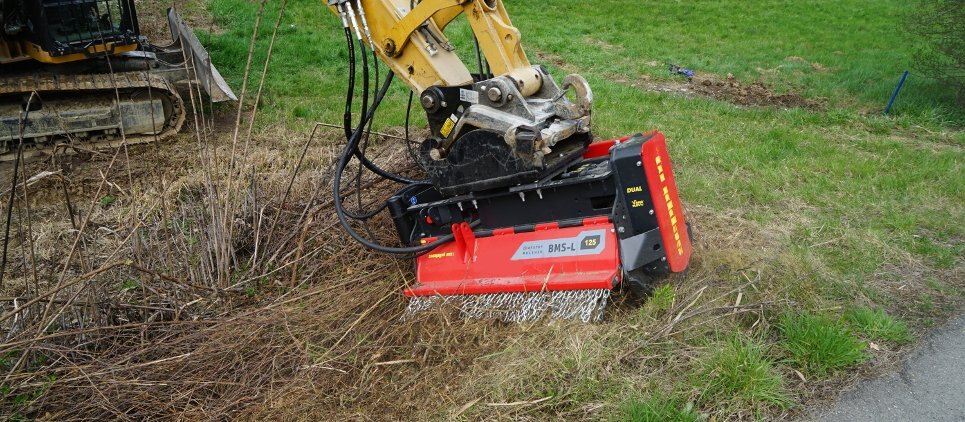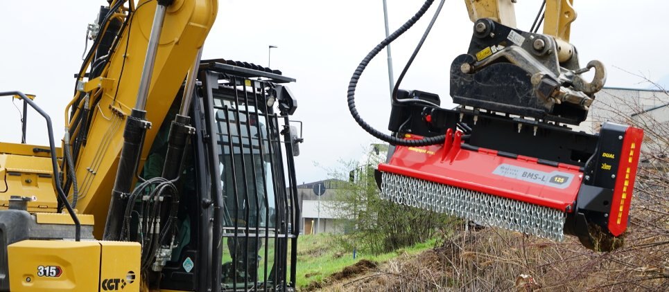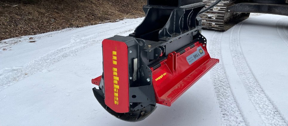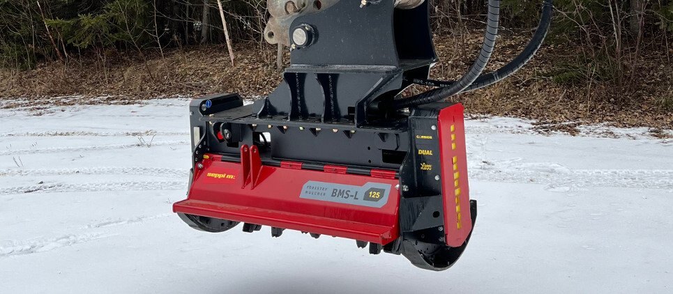 The SEPPI mulching head BMS-L has been developed for medium size excavators. It is strong mulcher, at a relatively light weight. Mounted on the arm of an excavator, SEPPI BMS-L mulcher will show great results in greenspace maintenance on riverbanks, in the forest and in other areas difficult to reach. Suitable for different types of vegetation management, right of way maintenance, clearing forests after harvesting wood and much more. The BMS-L has two adjustable hoods and can thus be perfectly adapted to the different working conditions and the vegetation. Many specific situations determined by the type of vegetation, the soil and the environment will thus be easy to handle! With its standard rotor, the BMS-L mulches brush up to 7 cm [2.8"] in diameter, with the optional forestry rotor with fixed hammers the mulcher can brush material up to 15 cm [6"]. SEPPI BMS-L it suitable for mounting on excavators or forwarders of different brands. Available working width: 100, 125 [39", 49"]. |