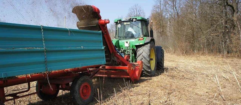With the SEPPI mulcher MIDIFORST drago the mulched material is taken by a conveyer belt up the chute and can then be collected and carted away in a trailer, leaving the soil clear of material. The MIDIFORST drago mulcher collects wood up to 15 cm [6“] from the forest floor for further use. As well as wood various other materials such as grass, leaves and biodegradable waste can be mulched and collected. Aerodynamic chute transports dry and also wet material in large quantities to the top for efficient discharge. The chute of MIDIFORST drago is with hydraulic folding, also the chute deflector is hydraulicaly adjustable. Wear-resistant conveyor belt for high discharge. 4 staggered rows of counterknives inside the casing will give a perfect result when mulching.
