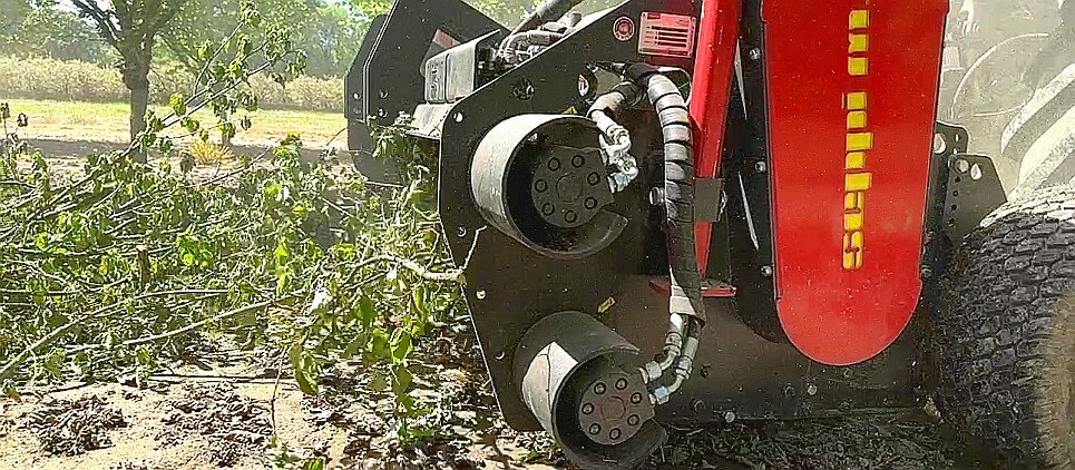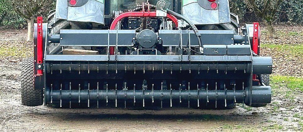 SEPPI M. Pick-Up mulchers mulch finely, through a fine mulching grid. This results in a fast biodegradation, within one season. WBS dt pick-up casing is very resistent, made of high-tensile steel. Standart is the SEPPI mulcher equiped with the Pick-Up kit for material feed with grid inclusive rotor. The rotor with tungsten carbide fixed hammers is very agresive and resistent. SEPPI WBS dt pick-up mulchs grass, brush and wood Rubber gauge wheels protect the roller on uneven and stony ground and if there are stones. Available working width: 225, 250 cm [89", 98"]. Very strong SEPPI flail mulcher with pick-up system for a very fine mulch in orchards: The WBS dt pick-up is a heavy mulcher for bushes and very strong prunings. The pick-up system collects piled up prunings from the soil and produces a very fine mulch that will quickly decompose. |