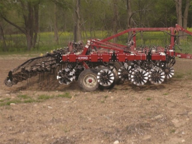 Designed for the finest surface tillage available, the I-1200 uses the Coil-Tech Coulter I, 1 1/4” independent blade mounting system to carry blades on the 5” spacing. The I-1200 models average 40% more blades and 39% more weight per machine than the standard I-1100 that uses 7” blade spacing and a lighter frame. The I-1200 creates the finest seedbeds and does a superior job of sizing and incorporating residue. The tighter blade spacing also makes the I-1200 capable of more mechanical weed control than most Independent Series Tools. Using the Coil-Tech I blade mount, the I-1200 still features “jackhammer” vibration that reduces soil density below the working depth to improve air and moisture storage capacity in the soil. Salford’s patented independent blade mounting systems also feature industry leading residue flow and obstacle protection to stand up to high speed operation. The 3 bar ½” tine harrows and 14” rolling basket provide exceptional leveling performance. |