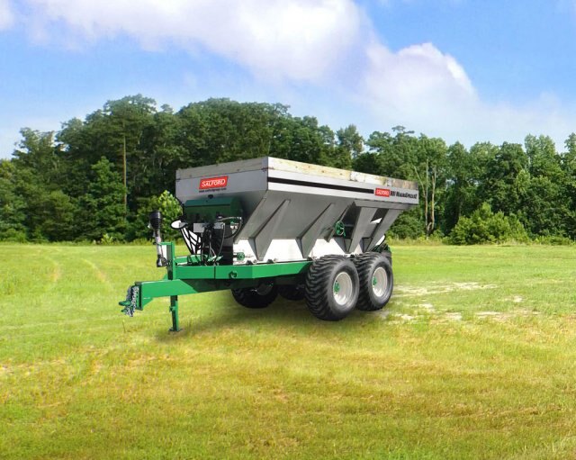 BBI MagnaSpread 2 Hydraulic Pull-type / Truck-mount Two independently controlled hoppers. Get the most from variable rate technology spreading with MagnaSpread 2. Equipped with Salford BBI’s Binary Manifold, making connections to your precision agriculture electronics a snap. The twin-hopper MagnaSpread 2 features Salford BBI’s patented multi-hopper design—the hoppers operate independently, with variable-rate control. You can achieve complex, targeted nutrient distribution to match the needs of each area of your fields—get two or more nutrients done in fewer loads and fewer passes, while your plants still get exactly the food they need to thrive. Farmers asked for a twin-hopper spreader, and Salford BBI delivered with MagnaSpread 2, a field general built for producer-level acreage. In a single pass, MagnaSpread 2 delivers multiple nutrient applications that normally require multiple laps around the field for a single-hopper spreader. The results—farmers using MagnaSpread area saving two to four days of application time per 1,000 acres fertilized, and hundreds of gallons of fuel saved per season. MagnaSpread 2 is a smart investment with big returns for today’s most sophisticated operations. More time for other tasks and more money in your pocket means taking your operation to next-level success with MagnaSpread 2. Cover Crops Salford's BBI MagnaSpread2 and MagnaSpread3 ideally suiting for applying cover crop seed and fertilizer in one pass. The individual hoppers allow the seed to be stored separately from the fertilizer and they can be metered into one blend in the field. The MagnaSpread2 and MagnaSpread3 are able to accurately apply lower rates of cover crop seed by mixing the cover crop with fertilizer into a high rate blend and applying them in the same pass. In areas with a warm fall with suitable moisture a fall applied cover crop will establish itself quickly and begin to fix the applied fertilizer almost immediately. For best seeding results a light tillage pass with equipment such as the Salford I-Series will help to establish the cover crop and promote rapid germination by improving seed to soil contact. |