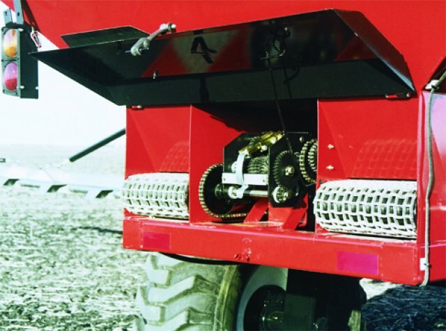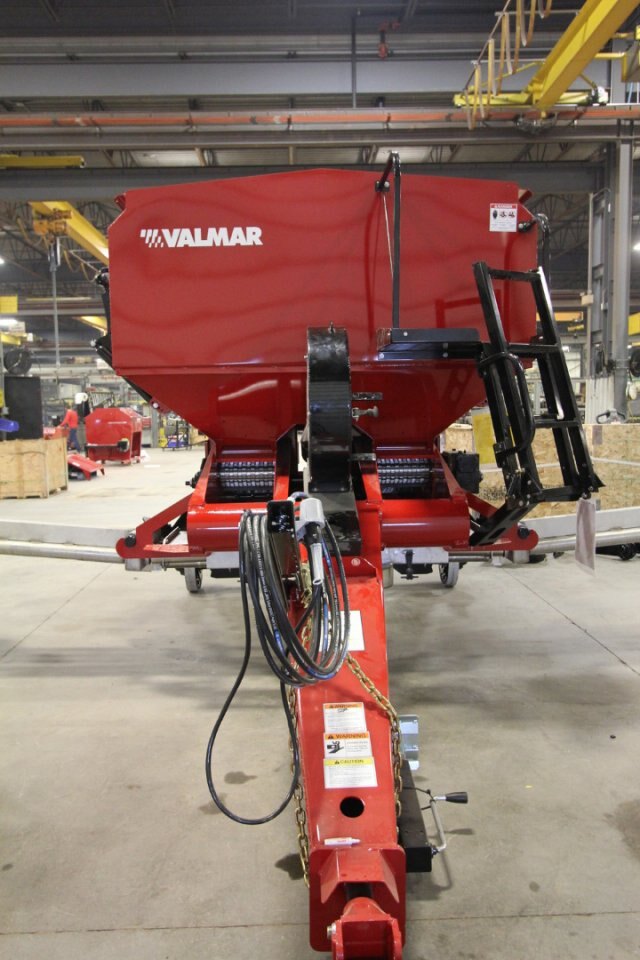 VALMAR AirFlo 8600 Pull-Type Fertilizer Spreader Delivering Greater Capacity and Flexibility in a Commercial Pull-Type Spreader Cover More Acres in Less Time Designed to meet the needs of large-scale farm businesses, the Salford Valmar Airflo 8600 is a high-capacity, pull-type spreader that delivers the highest rates of application currently available in a commercial spreader. Thanks to its advanced design, the Airflo 8600 delivers rates as high as 1,000 pounds per acre at 8 miles per hour, allowing you to finish large jobs faster than ever. Accurate Metering System The Airflo 8600 precise rate is a result of the ground-driven metering system that automatically adjusts on the go to ensure a uniform application rate regardless of ground speed. The hydraulically engaged metering system is based on a 30-setting, oil bath gearbox combined with a two-speed gear ratio to allow 60 settings that can be adjusted in increments of seven percent. This enables operators to select from more settings at closer increments, a feature that translates into more control over application rate for substantial savings in fertilizer costs. The 8600 can also be equipped with a hydraulic drive metering system for those using variable rate technology. Spread More Product between Fills The 8600’s extra-large, 230-cubic-foot hopper can carry up to seven tons of product. With a capacity like that, you’ll be able to cover more acres between fills. The hopper itself is constructed of corrosion-resistant, painted 409 stainless steel and comes with a roll tarp installed. Ideal for Row Crop Farming Originally designed to meet the needs of row crop farmers, the 8600 features axles which can be adjusted from 72 inches to 120 inches to accommodate most row spacings. In addition, the 8600 can be equipped with optional tire sizes to achieve greater flotation or narrower tracking, depending on the operation. High Capacity PTO or Hydraulic Driven Fan This fan has field-proven history on the Air Max. With an operating speed of 4,700 RPM, the fan’s air flow feeds through a nine-inch outlet directly to a two-piece manifold. Important features include a 17-inch fan impeller with plastic impeller blades and a four-band fan belt with tightener. The standard fan drive is a 1,000 RPM, 1 3/8-inch, 21T spline drive shaft. An optional 20T, 1 3/4-inch yoke with bridge is available for those requiring a larger driveline. Valmar also offers an optional hydraulic driven fan drive. This option requires 35 gallons per minute hydraulic flow operating at 2225 PSI – well within the capability of some of today’s higher capacity tractors. Durable and Easy to Maintain The 8600 includes a number of important features that provide for increased durability and easier maintenance. For long life, the hopper and booms are manufactured from stainless steel. There is easy access to all mechanical parts including the manifold. Finally, calibration and emptying of the unit is easier, thanks to funnel trays that are inserted under the metering system for easy collection of material. Choose Boom Width to Match Your Needs The Valmar 8600 comes with a standard 66-foot boom but can also be equipped with optional boom widths of 60 feet, 54 feet or 57 feet, allowing you to match boom width to your crop requirements. Booms are hydraulically folded and feature a hydraulic shut-off on the right boom to allow application on the left side only. All booms are equipped with rubber torsion boom suspension (which do not require any service and reduce friction, bouncing, and wear) and manual folding, break-away tips to minimize damage that may occur from striking obstacles in the field. Easy to Operate Designed for easy use, all important field operations on the Valmar 8600 are hydraulically controlled from the cab through the use of three separate hydraulic lines (four lines with optional hydraulic fan drive). For example, the booms are folded, unfolded and locked hydraulically (through the use of a sequencer valve), allowing quick and easy transition to and from transport position. Also, the metering drive wheel is engaged or disengaged hydraulically and comes equipped with a lockout valve to ensure ongoing positive engagement. Finally, half width application is possible thanks to a hydraulically operated half shut-off clutch system that comes equipped with a pressure relief valve for trouble free operation. |