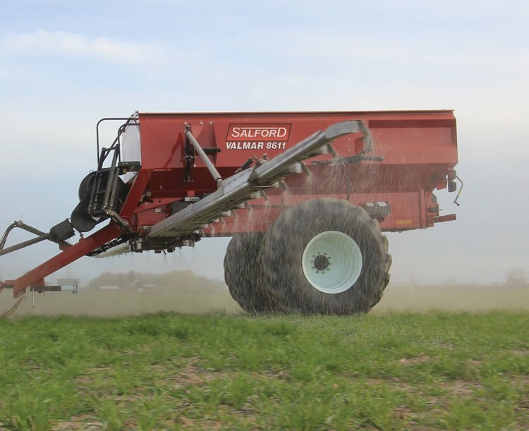 Designed to meet the needs of large-scale farm businesses, the Salford Valmar 8600 is a high-capacity, pull-type spreader that delivers the highest rates of application currently available in a commercial spreader. Thanks to its advanced design, the 8600 delivers rates as high as 1,000 pounds per acre at 8 miles per hour, allowing you to finish large jobs faster than ever.