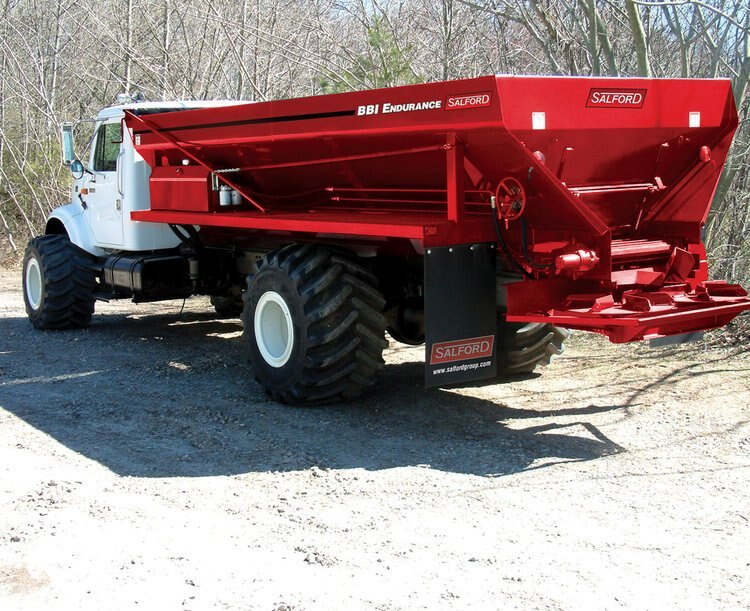 Available in lengths ranging from 14–24 feet, BBI Endurance is the industry leader in cost-in-use. Unrivaled power, performance, and precision in targeted delivery of organic nutrients. Spread litter, manure, shavings, beet lime, and much more. Standard-equipped with Salford’s Binary Manifold for precision agriculture connections, as well as the Task Command System from Salford Electronics, featuring guidance, auto steer, and variable rate control. Endurance is the definition of excellence among litter spreaders on the market today, the standard-bearer for more than a decade. Built with Salford’s spinner system, Endurance achieves the same level of precision with heavier, wetter organic material normally achieved with the dry artificial stuff. When we designed Endurance, we had chicken litter in mind, but the uses quickly spread to meet the needs of farmers around North America and the world. Now, our customers use Endurance for manure, shavings, lime, humalfa, sand organics, wood chips, mulch, humate, compost - pretty much any flowable material. Endurance is an option-rich line, available in pull-type and truck-mount versions. We have multiple hopper designs ranging from 14-24 feet to match any possible need in the field. Our walking beam suspension can handle just about any terrain. You can count on Endurance to help you achieve drastic reductions in material and fuel waste, while increasing your yield. Endurance - like all Salford hydraulic spreaders - is optimized for precision agriculture. Our proprietary Binary Manifold connector and ISOBUS-ready platform make in-the-field links to all major technology suppliers a snap. |