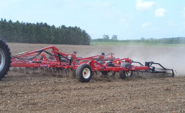 Strength, durability, and performance are standard features on Salford field cultivators. Hydraulic self-leveling frames and fine-adjust single-point depth control are also standard features. Capped, all-tubular steel frames add to the strength of the machine, and 4" x 6" main beams and 2.5" x 2.5" tine bars stand up to the toughest operating conditions. Fewer hinge points greatly reduce wear on Salford cultivators, lowering maintenance costs over the life of these durable machines. |