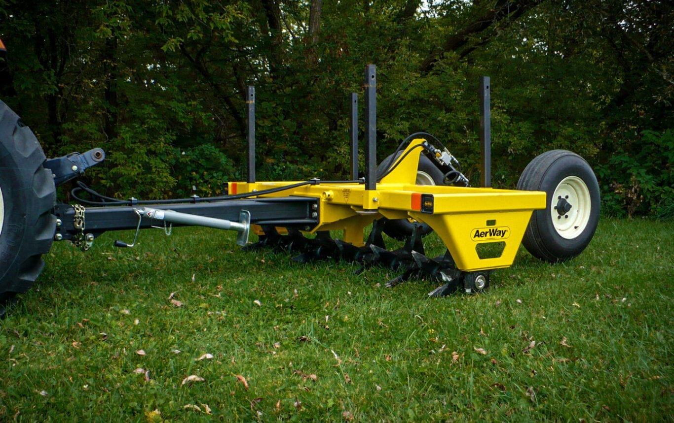 | The AerWay family of AWM models are designed to meet the needs of hay and pasture farmers working smaller sized acreages. These Salford tools are dependable, durable, versatile, and built to improve soil productivity. With the ability to cultivate and aerate with one machine, the AWM series features patented AerWay Shattertines that lift and fracture tough soil to increase air and water movement, and all with one pass. AerWay’s adjustable roller settings allow operators to choose the degree of compaction relief, cultivation, aeration, and/or residue incorporation. |