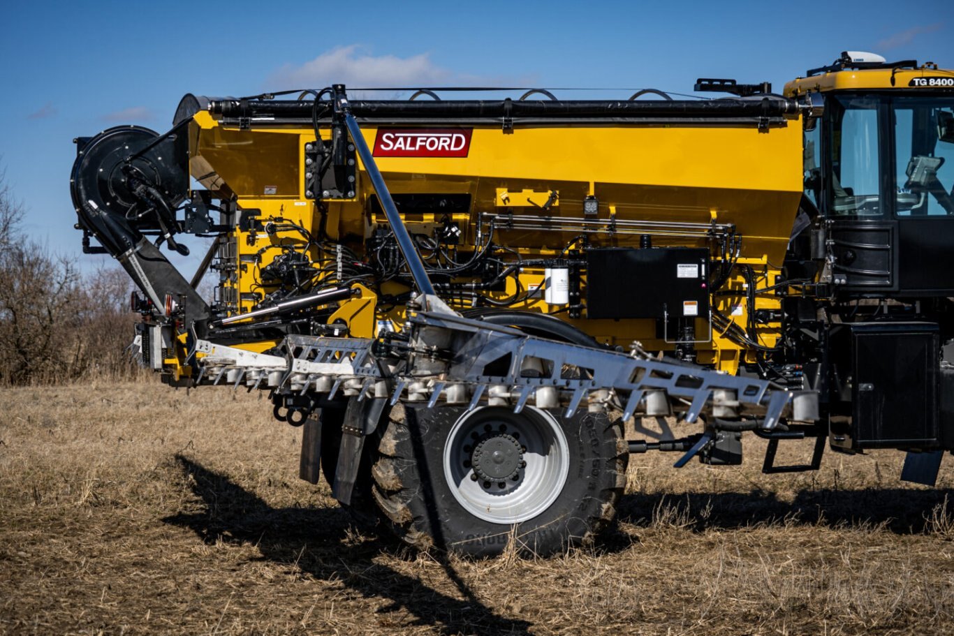 | 6700 AGCO Salford’s next-generation air boom applicator offers versatility, precision application and efficiency all in one complete package. Featuring Salford’s Valmar air boom technology, this self-propelled chassis mounted air boom offers a 90-foot application width with one of the largest hoppers on the market. This design offers greater capacity for fewer fill-ups, an easy-to-operate metering system and the most advanced air boom system available on the market today. The 6700 is ideal for broadcast application of granular fertilizer, granular chemicals, cover crops and micro-nutrients. |