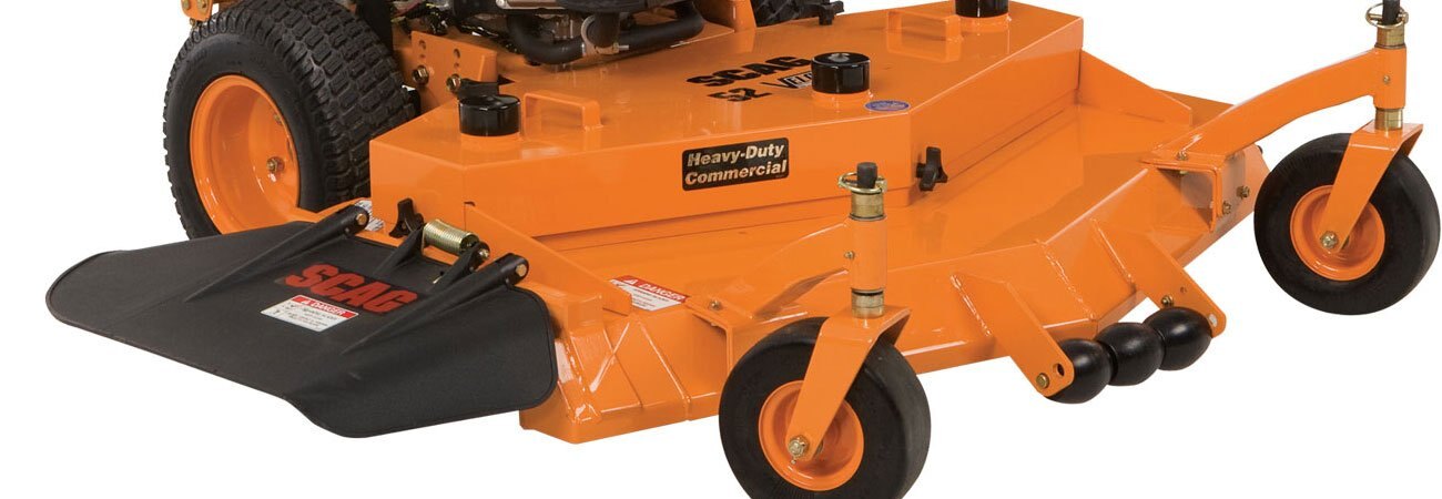 // Heavy-duty blade drive spindles provide reliable performance season after season. The Scag spindle easily handles the high horsepower and torque requirements of this powerful mower. Three year limited warranty. // Forward ground speeds up to 7.4 mph controlled with a single forward speed lever (patented) that can be changed on the go. Pistol grip hand controls allow maximum maneuverability, reducing operator fatigue. // Your choice of engines: Powerful and efficient Kawasaki FS V-twin engine options. // Choose from a 36" Advantage™, or a 48", 52" or 61" Velocity Plus™ cutter deck. Scroll down for a complete list of engine and cutter deck combinations. // Heavy-duty hydraulic drive system includes dual 10cc Hydro-Gear pumps, which feature larger input bearing for maximum reliability, and Parker hydraulic motors for reliable, zero turn maneuverability. // Adjust-A-Trac feature lets you conveniently adjust neutral and tracking settings instantly, in the field // Heavy 1/2"-diameter cutter deck mounting hardware increases deck mounting strength. // Heavy gauge handlebars are adjustable to provide additional comfort for taller operators. Handlebars have three height settings and fit a wide variety of operators. // Redesigned handlebars allow for more comfortable operation, with reduced handlebar diameter and adjusted steering lever angle. Twin hand controls with spring assisted EZ-GRIP allows for smooth, precise responsiveness. EZ-GRIP reduces the amount of hand force required to operate the mower for increased operator comfort. // Operator presence controls are vinyl-dipped and designed for operator comfort. // Large 5.5 gallon, rust-free fuel tank keeps you in the field cutting. This tank design is 20% larger than tanks on other mower brands. Molded-in cup holder provides added operator convenience and comfort. // Convenient dash panel puts the controls at your fingertips, including key switch, throttle, electric blade brake switch and optional hour meter. The parking brake prevents movement during trailering and parking on slopes. // Ogura PTO clutch brake engages the cutter blades. Adjustable air gap ensures long component life. // "Split-Steel" pulley design is stronger than cast iron or stamped pulley designs. They are precision matched and lightweight for reduced inertia and decreased wear on the cutter deck drive system. // High-quality bearings and bearing debris guard on idler pulleys ensure long, reliable service. Tapered lock hubs on hydro pump pulleys provide added reliability and ease of service. // Marbain cutter blades stay sharp longer for reduced maintenance. Heavy-duty blade drive spindles provide unbeatable performance. // Extra durable front caster arms are designed to handle rough environments.