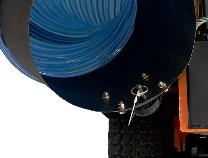 Safe and Convenient TransportTransport lock safely secures the boom arm and hose when not in use; nylon bearing delivers smooth movement. A transport pin locks the nozzle to the loader to help protect the hose during transportation. |