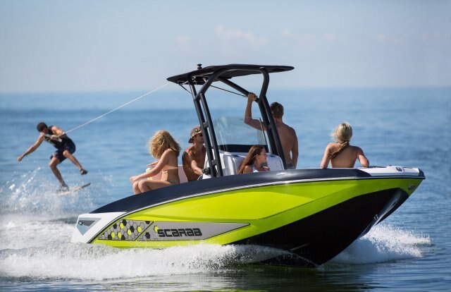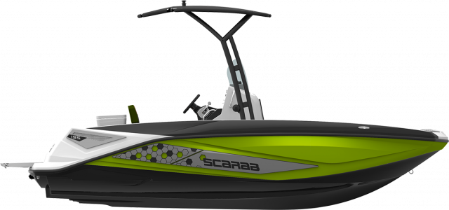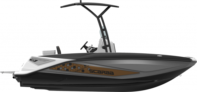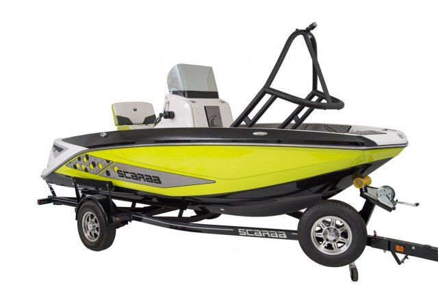 • Scarab® custom trailer, painted, brakes w/chrome wheels & swing away tongue • Trailer brakes |