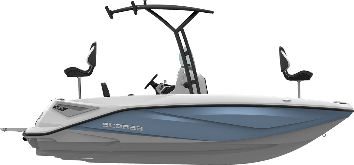 • Scarab® custom trailer, painted, brakes w/chrome wheels & swing away tongue • Trailer brakes |