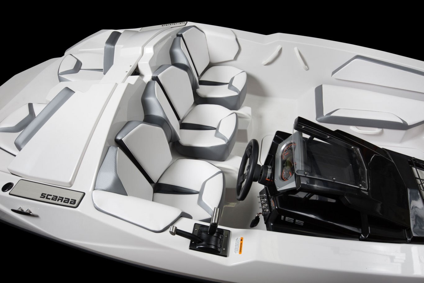 Fast, affordable, and exhilarating. With the Scarab 165 G, you and four passengers will experience endless excitement. Upon a days end, kick back and relax in your comfortable stern facing seats. LOA / 15' 9" Persons Capacity / 5 people Fuel Capacity / 20 gal |