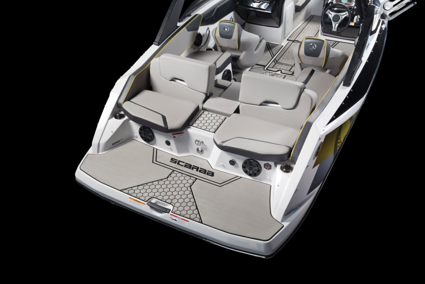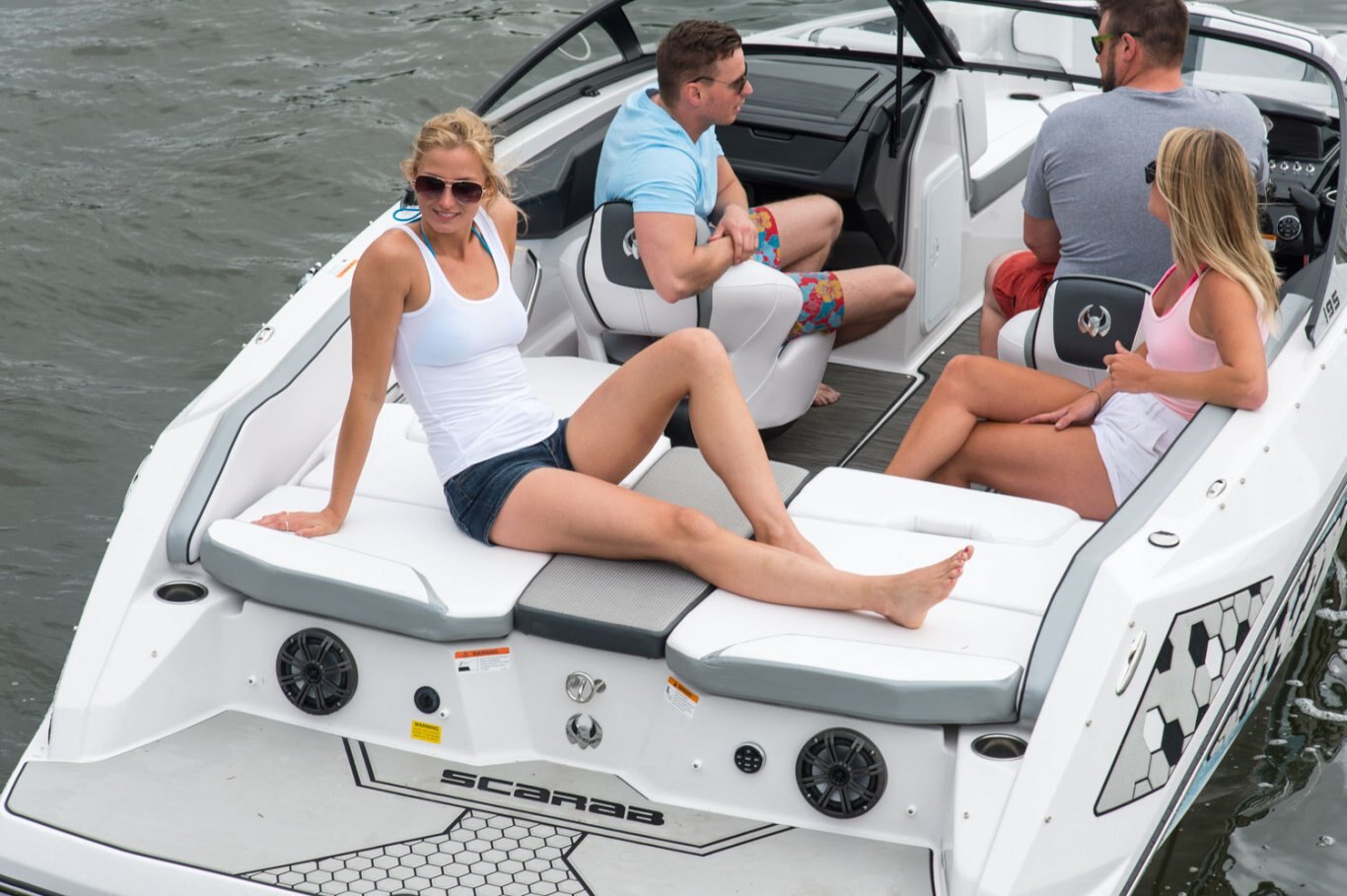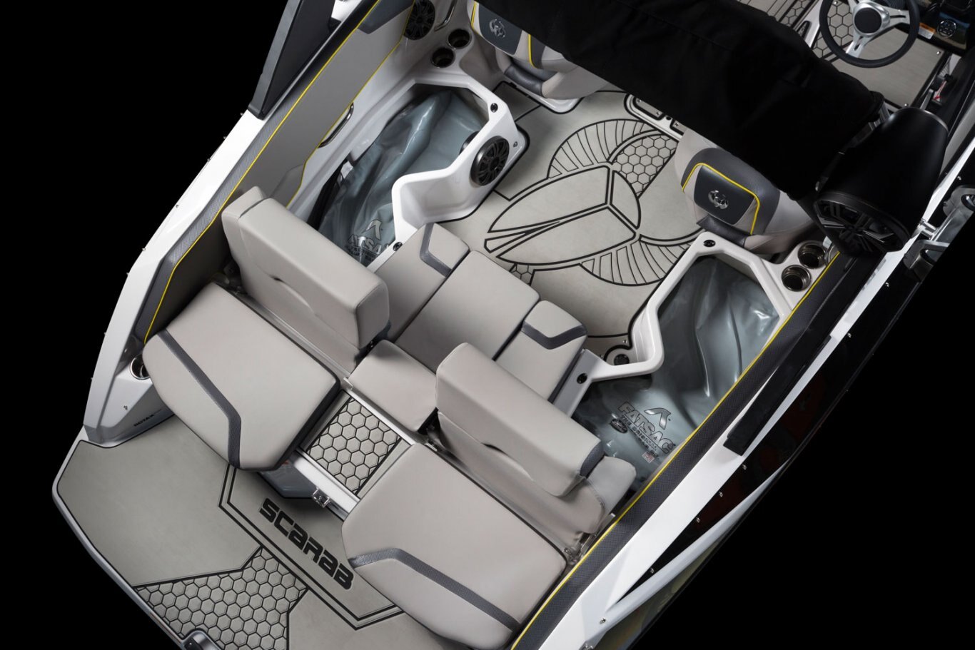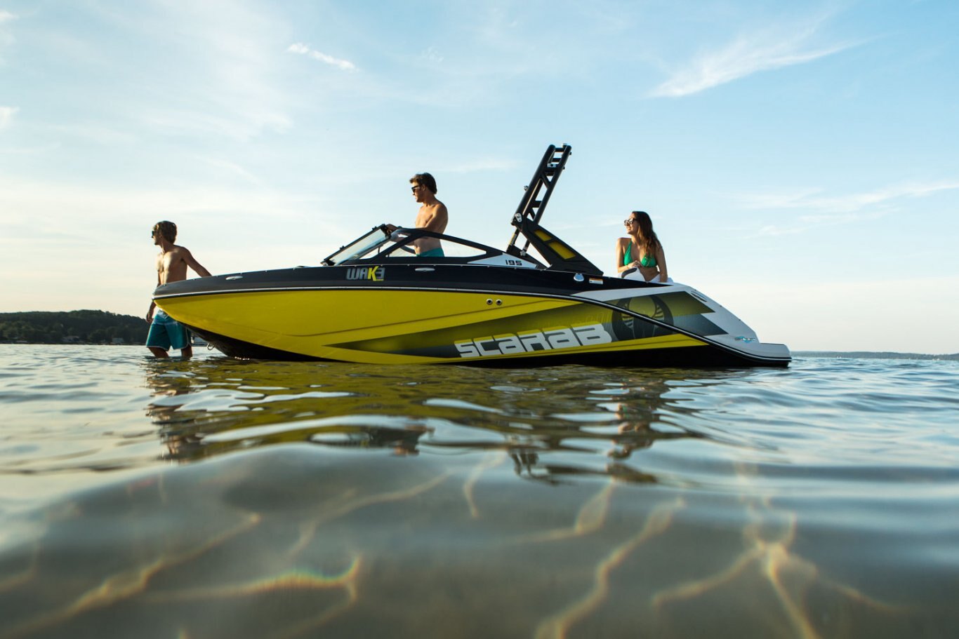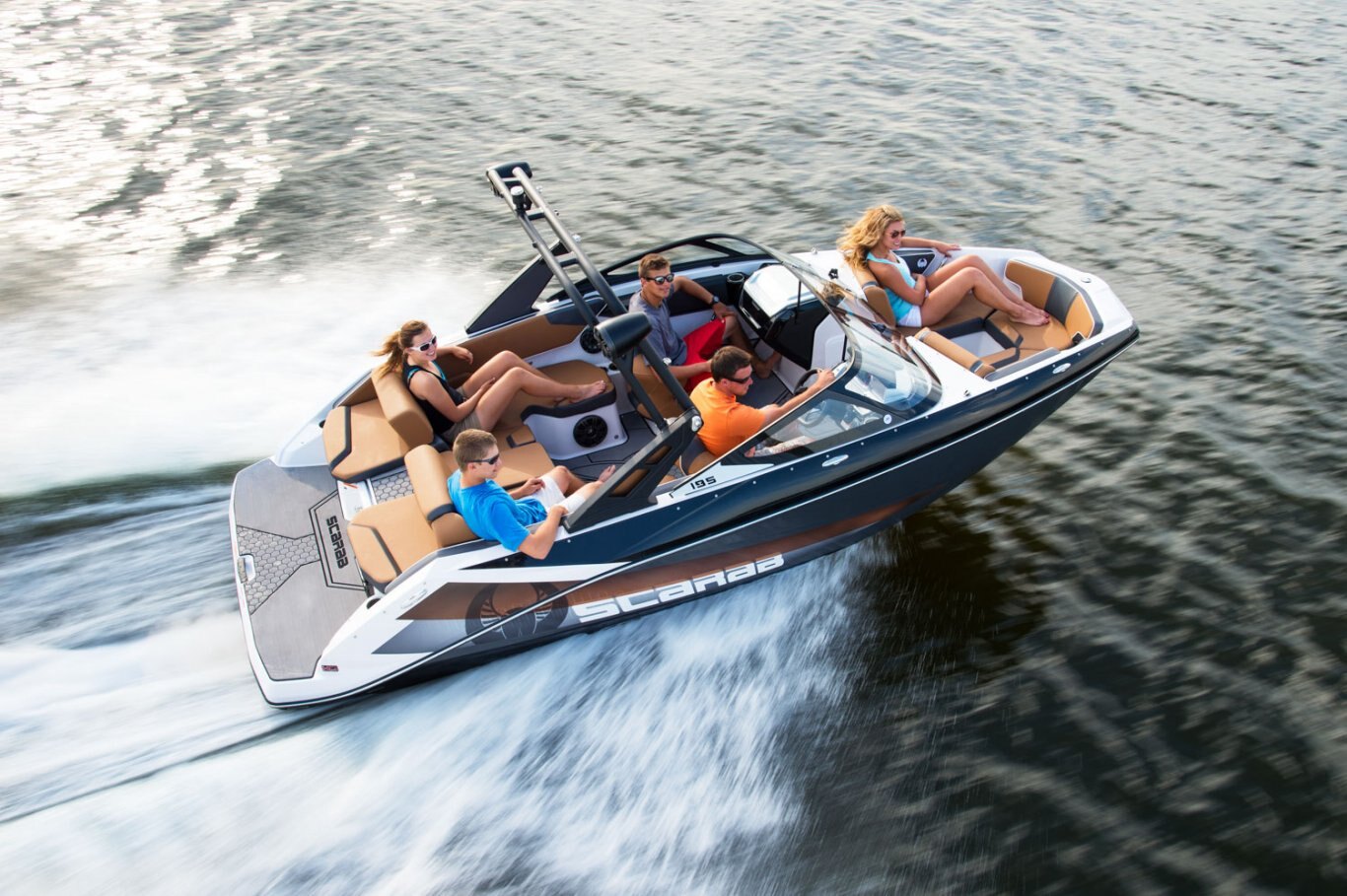 Bred to break industry standards on fun, the Scarab 195 was born to quench a thirst for adrenaline. She's swift and agile, flaunts every curve, and follows through on her promise for wicked wakes and legendary fun. Suit up; a setup this beautiful will make you wish for more hours in the day. LOA / 18' 10" Persons Capacity / 8 people Fuel Capacity / 31 gal |