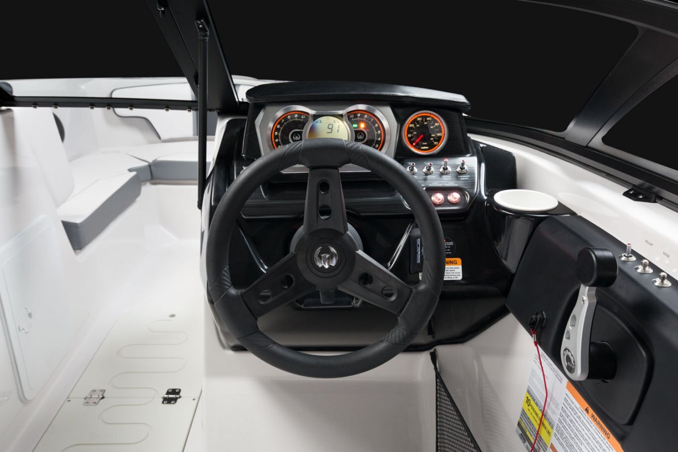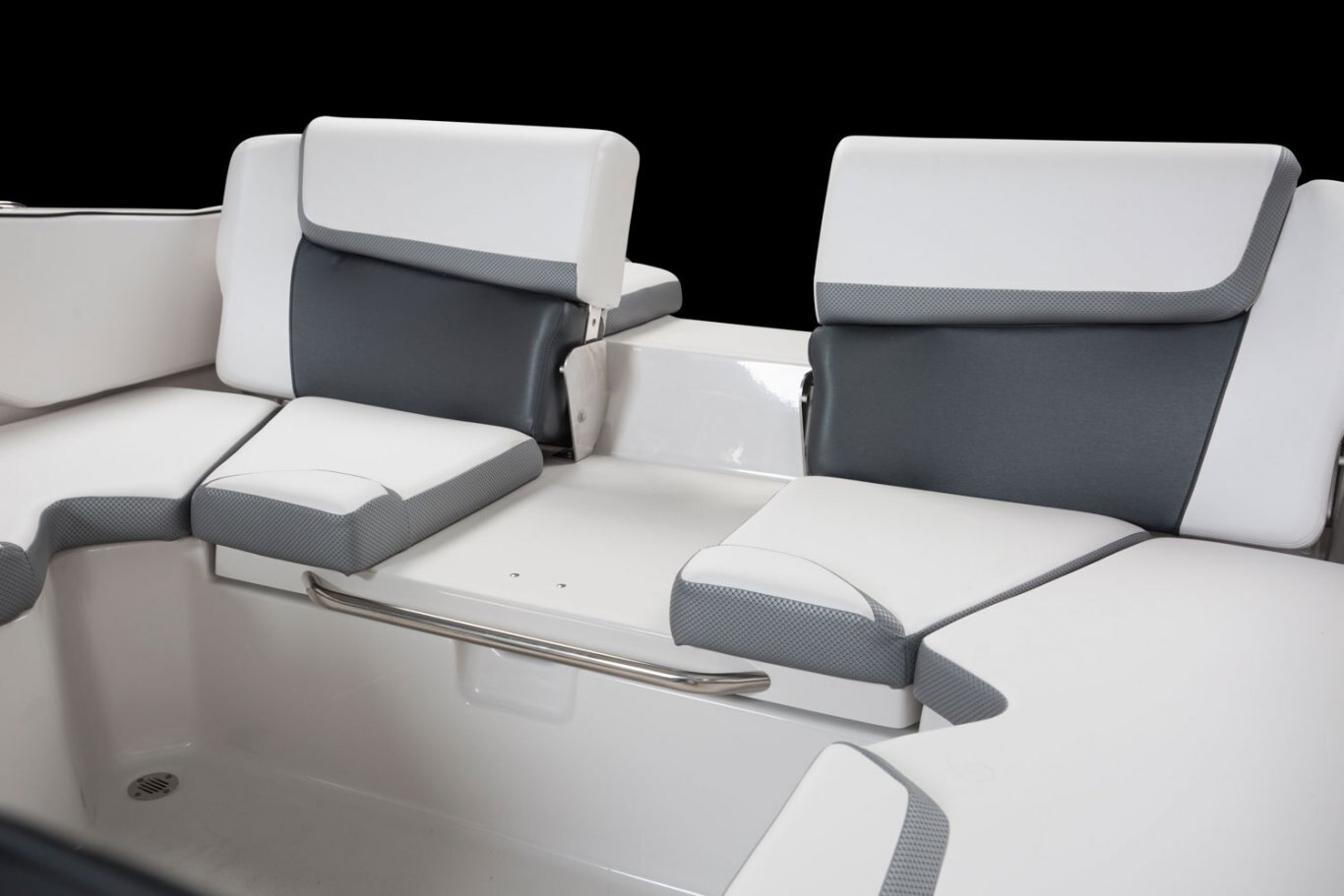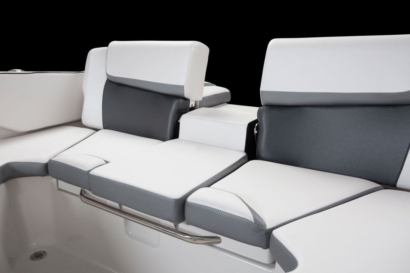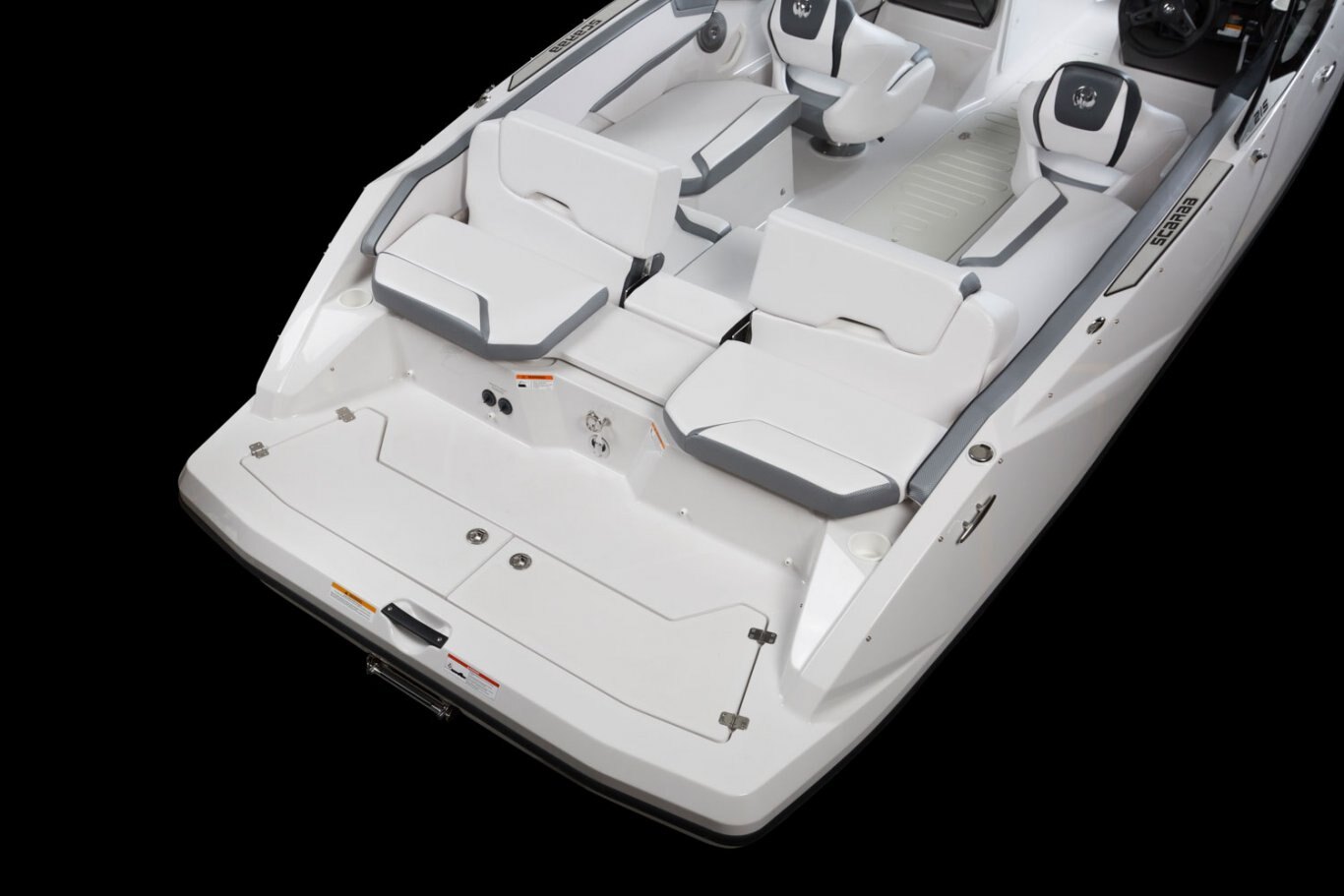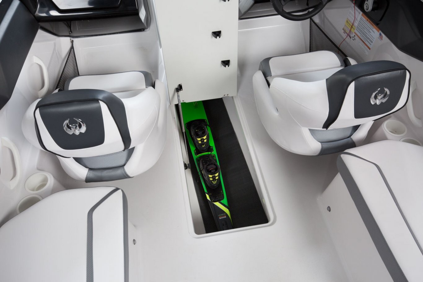 With Twin Rotax® jet engines at your disposal and a standard Bimini top, the 215 G is ready for the party. Deep storage compartments and plush notched seating will keep the interior clear and your crew in high spirits for day after day of Scarab fun. LOA / 21' Persons Capacity / 10 people Fuel Capacity / 41 gal |