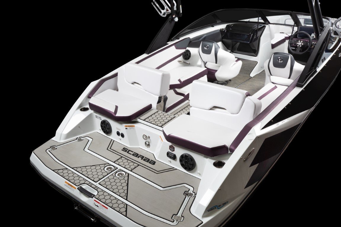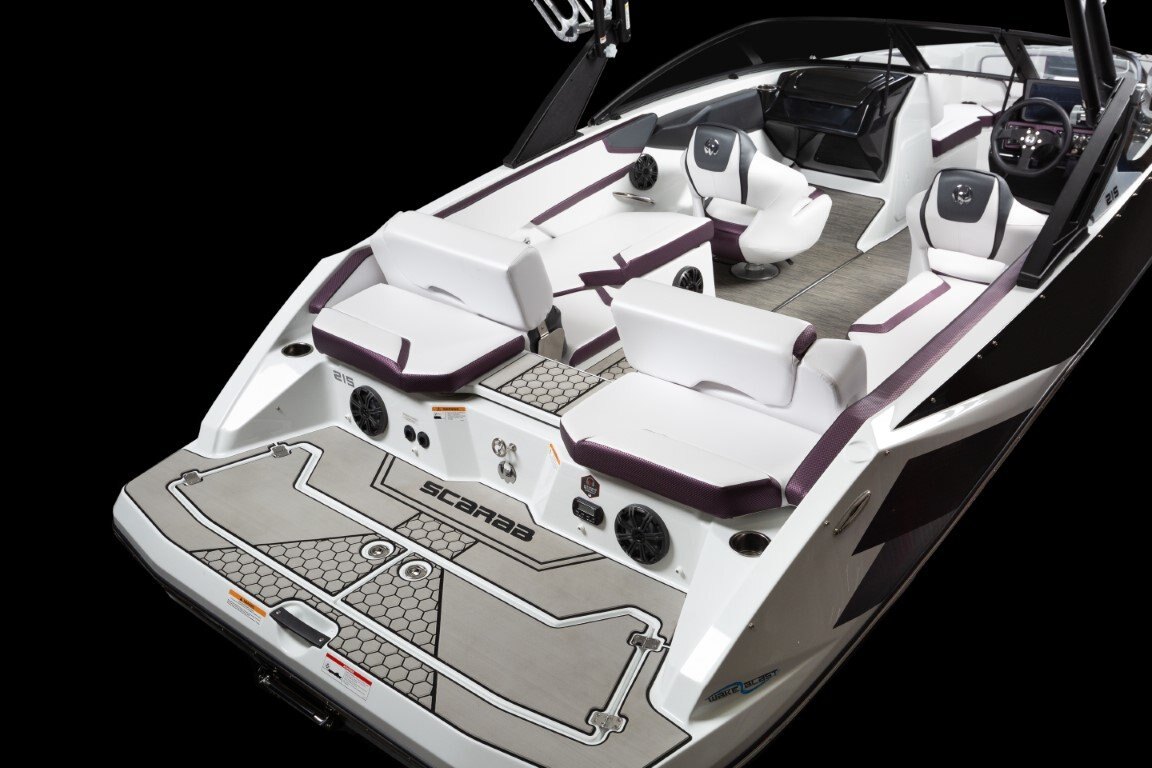 Catch a glimpse of greatness: where mastery meets dominance stands the Scarab 215. She's bold and beautiful, swears devotion to onboard comfort, and easily churns a wake for a party of 10. Don’t settle for traditional; instead, step into the 215 and go where you feel most alive. LOA / 21' Persons Capacity / 10 people Fuel Capacity / 41 gal |