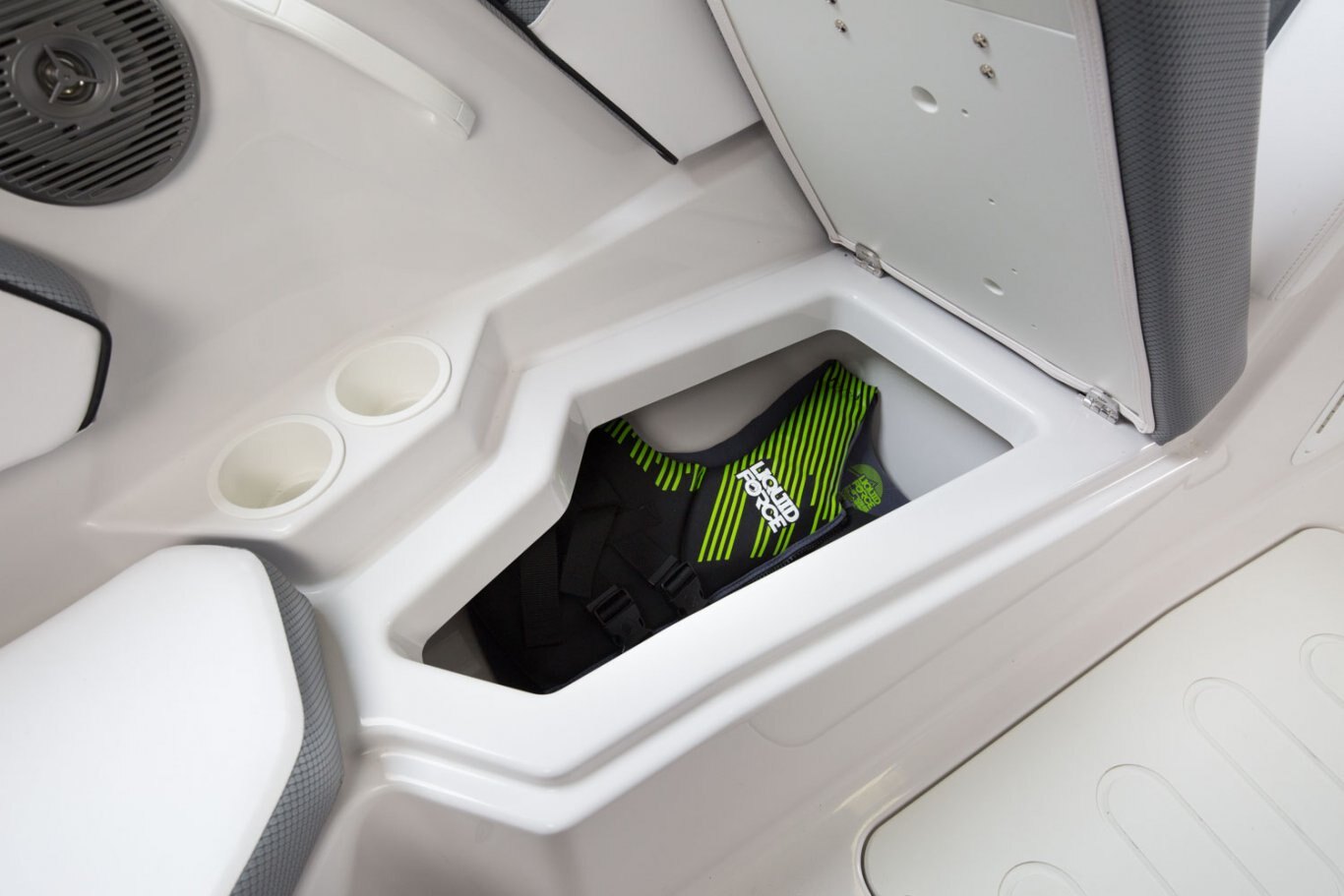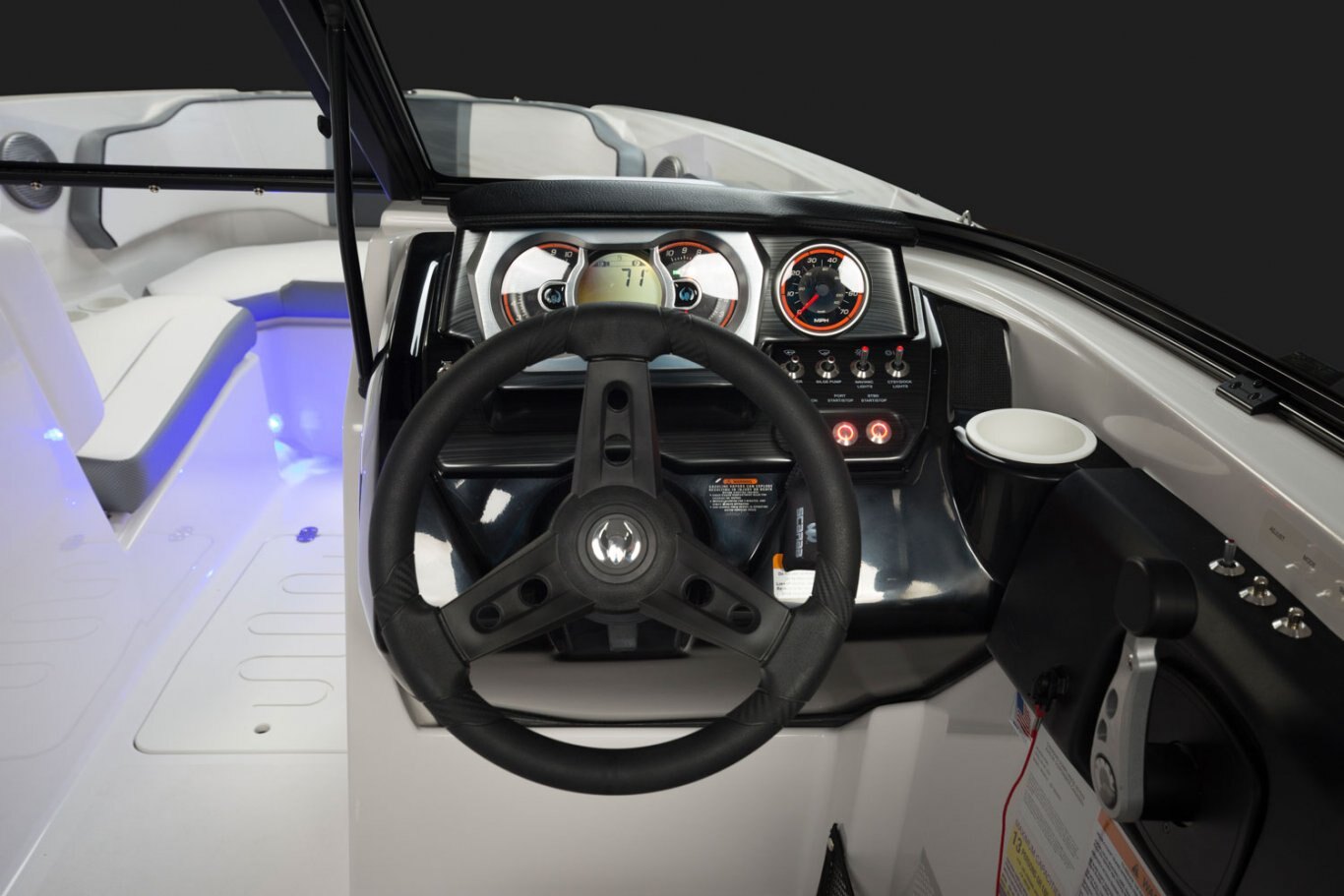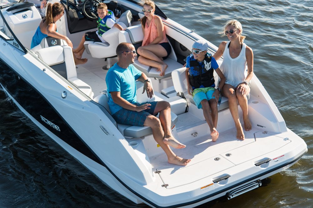 When you desire more than above and beyond, the Scarab 255 G is the next step in luxurious, sporty jet boats. The astute black exterior combined with a standard trailer, cavernous storage, a Bimini top, and notched seating puts this jet boat in a sector of its own. With capacity for 13 and all their gear, you will never want to return to the dock. LOA / 25' Persons Capacity / 13 people Fuel Capacity / 56 gal |