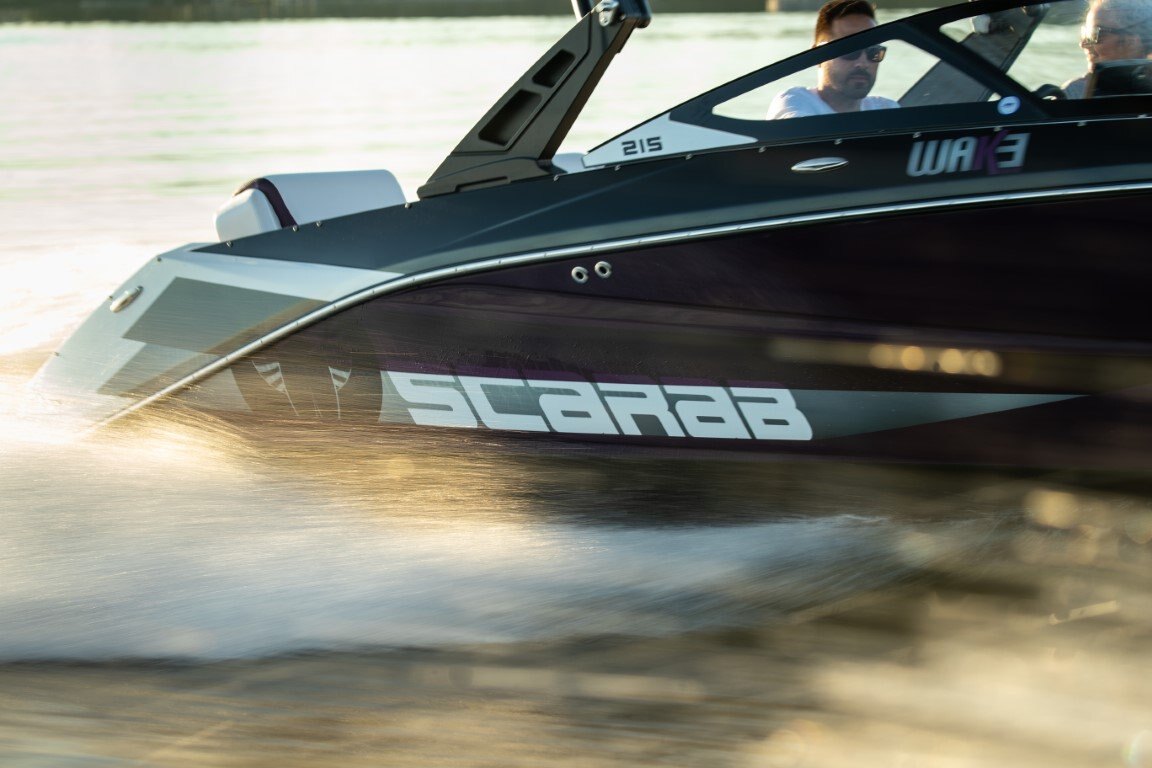 Catch a glimpse of greatness: where mastery meets dominance stands the Scarab 215. Bold and beautiful, devoted to onboard comfort, and easily churns a wake for a party of 10. Don’t settle for traditional; instead, step into the 215 and go where you feel exhilarated.