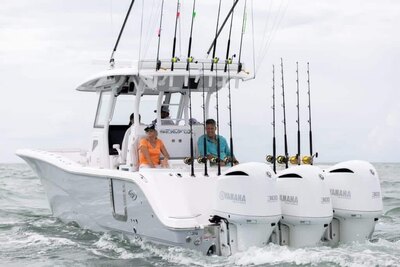 ABOUT 328 COMMANDER This 57 mile per hour beast, equipped with twin Yamaha F300s, F350s or 425s, is unbelievably agile, yet as solid as any boat...