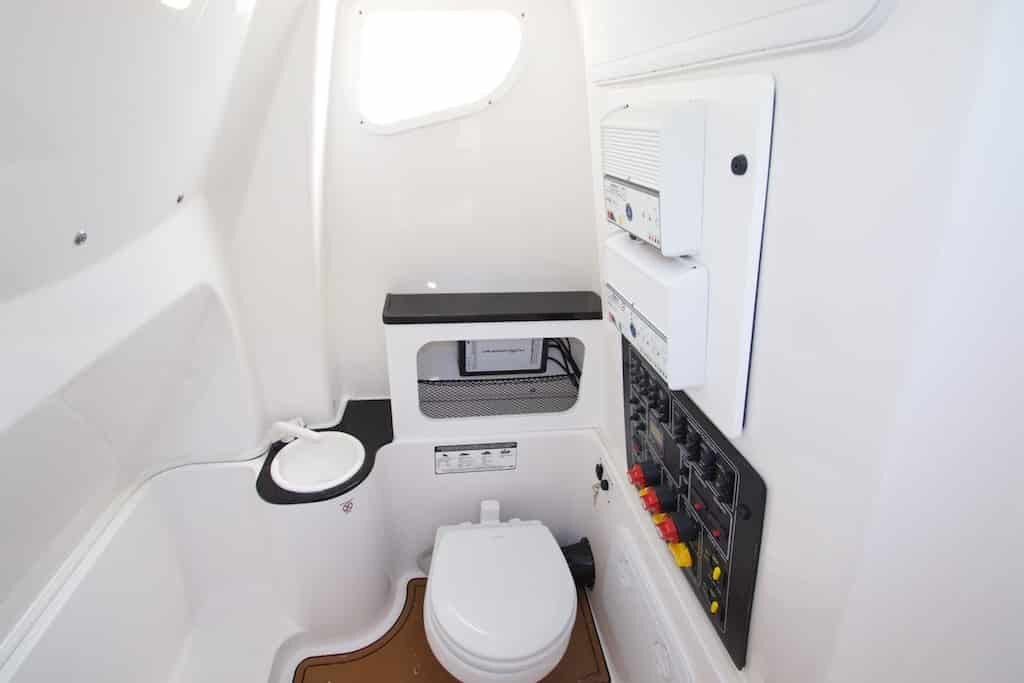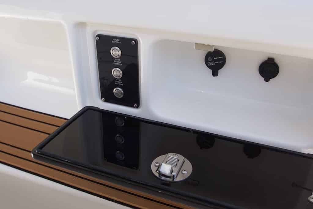 - Freshwater washdown located on seating pod (26-gallon freshwater tank)
