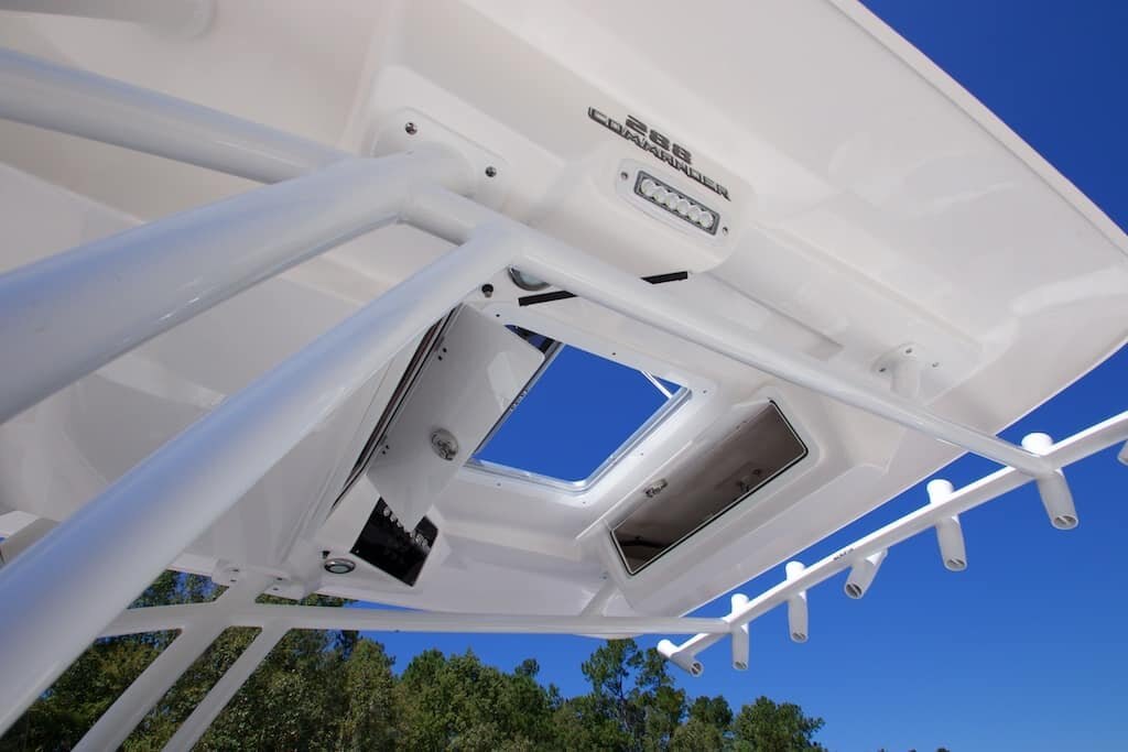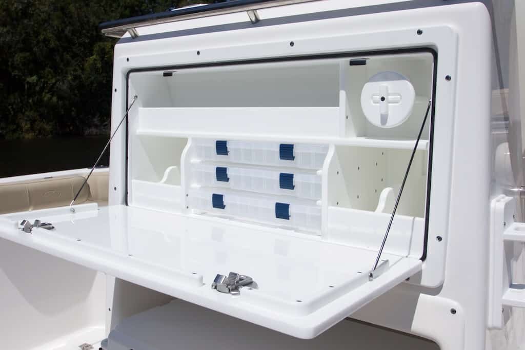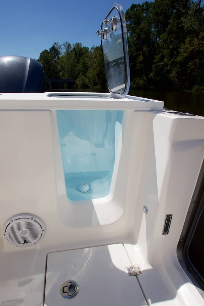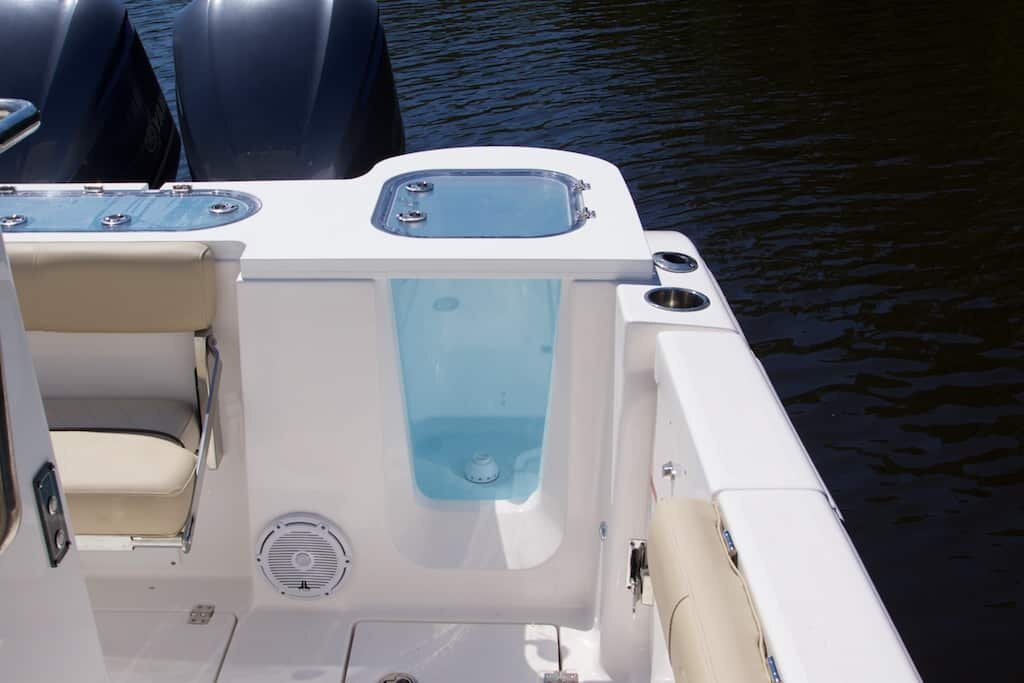 - Aquarium style pressurized livewell with window (30 gallons, 1100 GPH aerator)