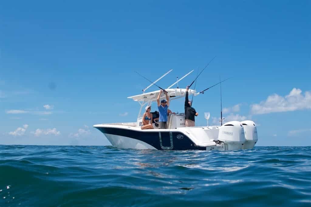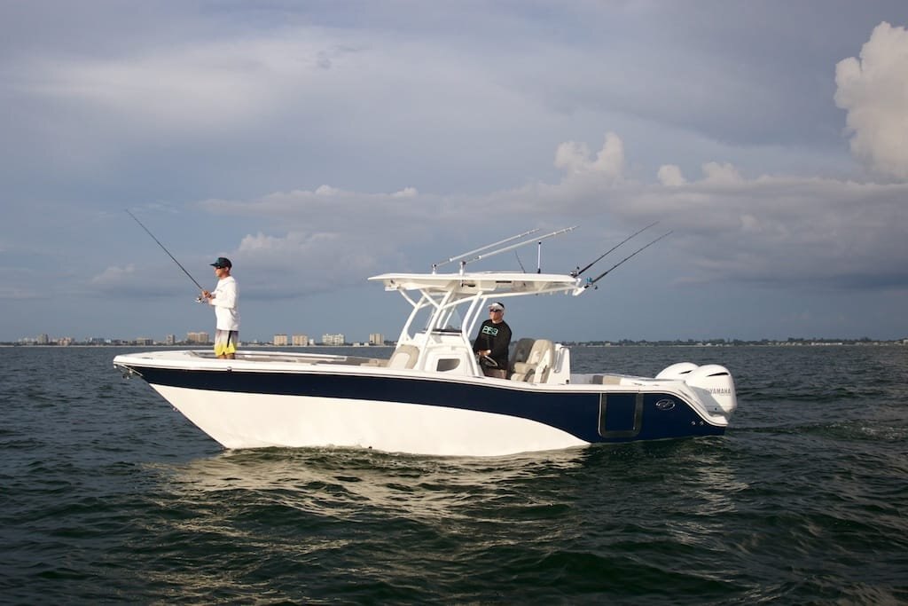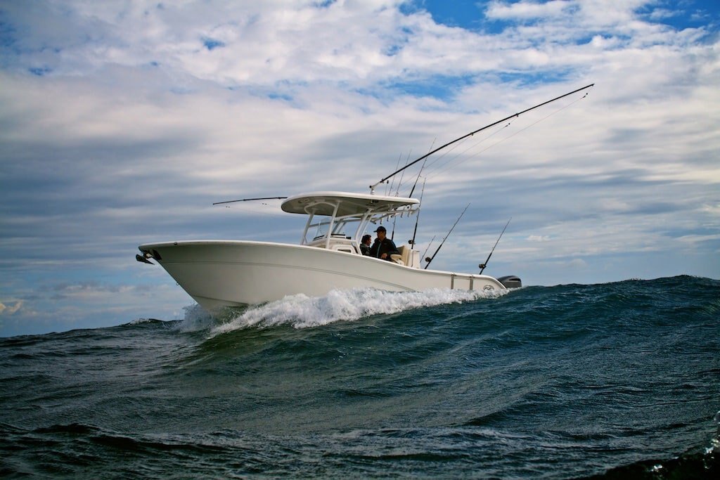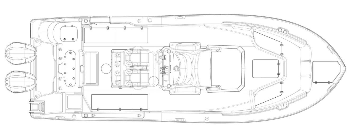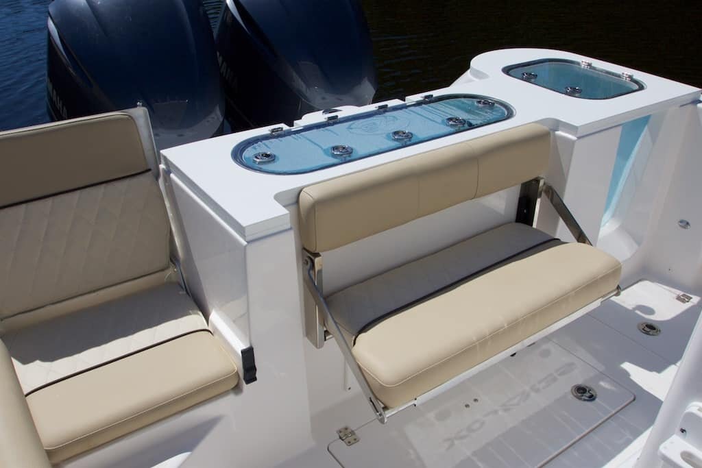 Cockpit: - Fiberglass helm seating pod with deluxe bucket chairs, adjustable armrests, rigging station and cooler storage