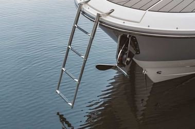 Move seamlessly between the deck and the water with transom-mounted, concealable ladder and optional submersible swim step for swimming and water sports off the back of the boat.