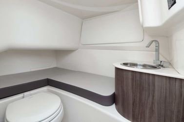 Cleverly designed niches for your cooler and watersports gear gives you that oh-so- satisfying feeling of everything fitting neatly in its place. The ample starboard storage space beneath the helm can also be upgraded to include a head.