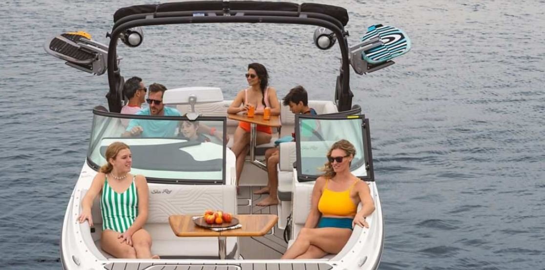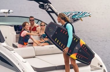 Built-in board storage and our intuitive surf system pairs ride-ready features with next-gen Sea Ray design language. Propelled by a standard 350hp MerCruiser® 6.2L engine with a forward-facing Bravo Four S® drive, contra-rotating props, SmartCraft Technology and DTS, the boat is enabled for family-friendly water sports and improved maneuverability when docking or traveling at low speeds.