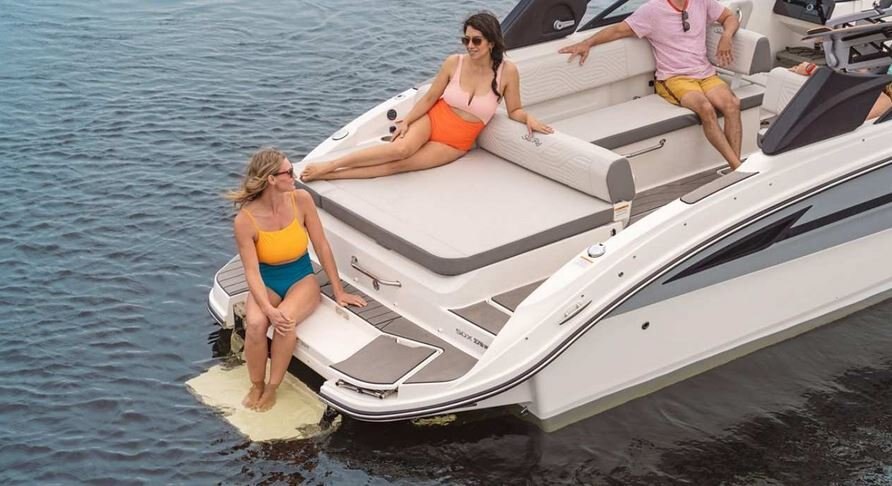 The broad swim platform has a concealable ladder and manual submersible swim step to give easy access in and out of the water. A standard bow ladder is also a new feature of the SDX 270.