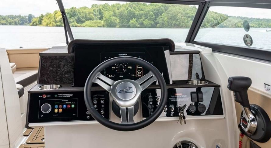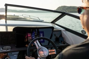 The intuitive helm is available with an optional 9" or 12" Simrad® touchscreen display to enhance the command experience.