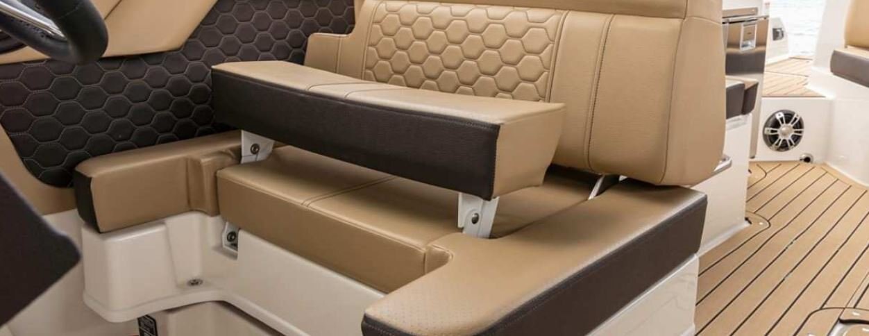 Flip things around with convertible portside companion and helm seats. For full flexibility no matter the size or make up of your group. At rest or running, you can set things up exactly to your liking.